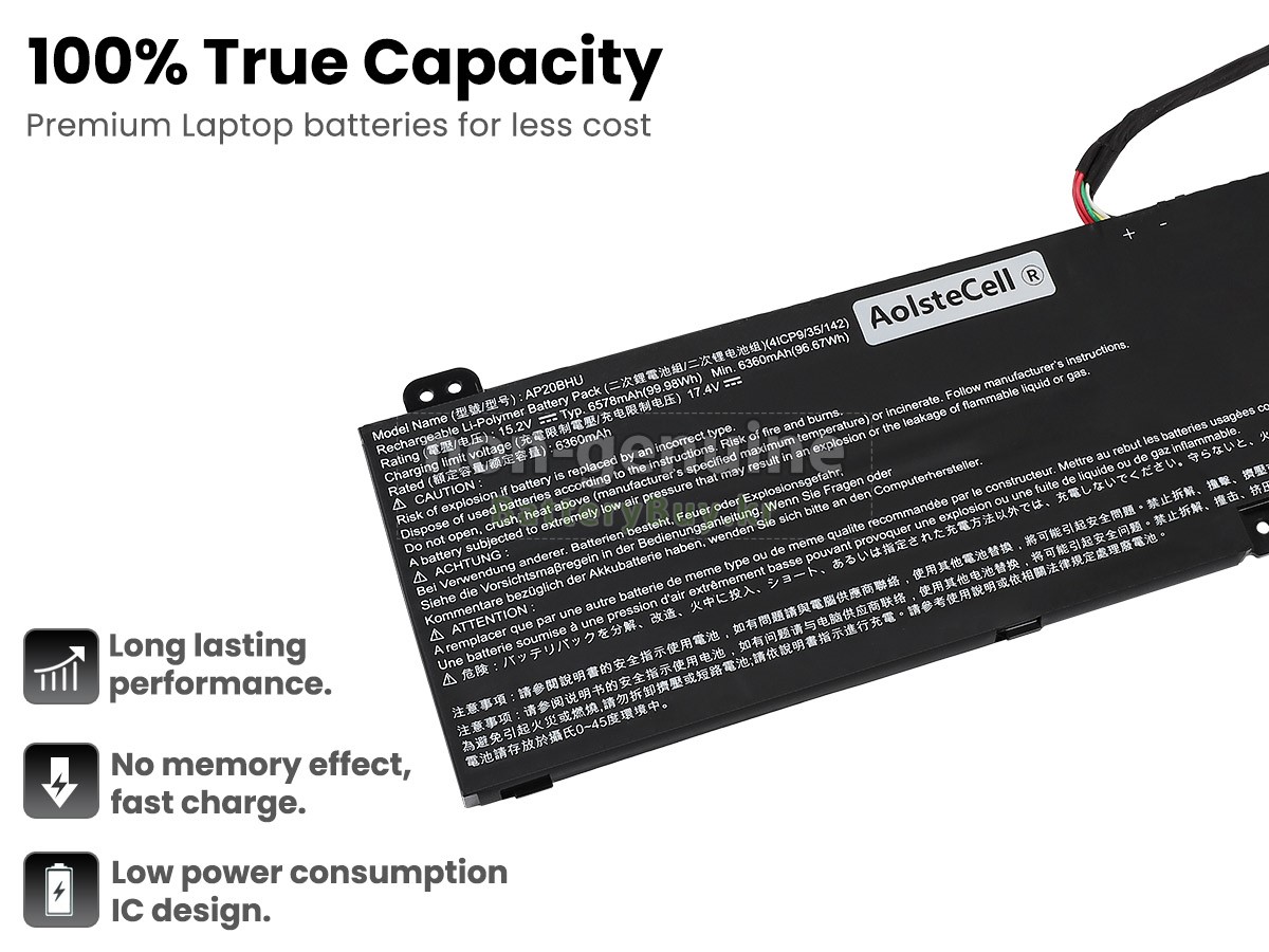 본 새로운 Acer AP20BHU(4ICP9/35/142) 대체용 배터리는 삼성, 파나소닉과 LG 등 오리지날 공장의 고품질 리튬이온셀을 적용하였고, 배터리의 케이스는 내용성 ABS플라스틱을 사용한 제품입니다. BatteryBuy.kr는 제품 안전성에 대해 요구가 엄격한 바 해당 Acer AP20BHU(4ICP9/35/142) 배터리 제품은 전부KC, CE, UL, ROHS, ISO 9001/9002 등 일련의 안전인증을 통과하여 국제표준에 부합되며 오리지날사의 규격과 100%로 호환가능하며 오리지널 AP20BHU(4ICP9/35/142) 배터리와 완전 매칭 심지어 초과 가능한 성능을 자랑하고 있습니다. 해당 Acer AP20BHU(4ICP9/35/142) 배터리의 충/방전 주기는 600회좌우인 바 최적의 배터리 라이프를 선사하고 있습니다.