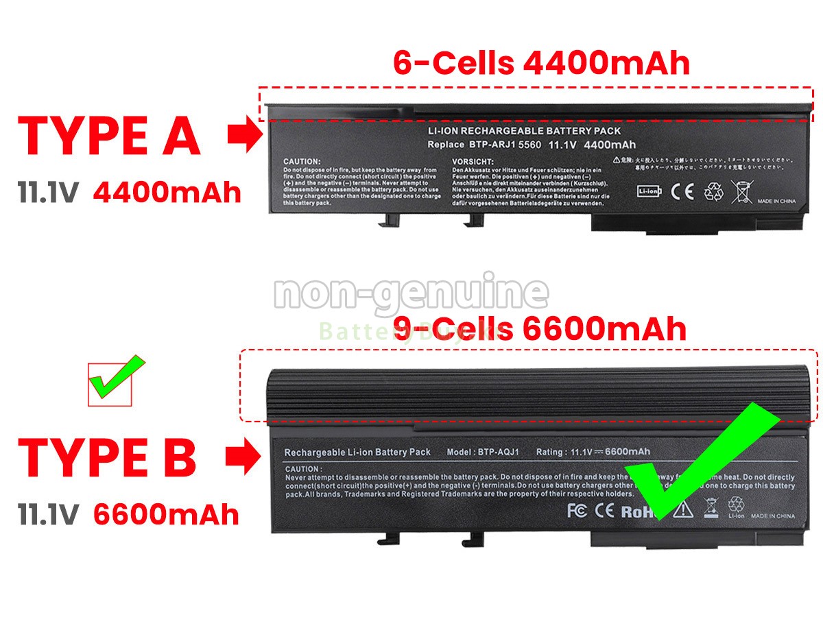 2 고객님의 원 Acer Aspire 5562WXCI 배터리의 전압과 용량이 당사 제품과의 일치여부를 확인 후 당사의 확대 이미지에서 인터페이스, 대체적인 모양의 일치 여부를 확인하십시오.