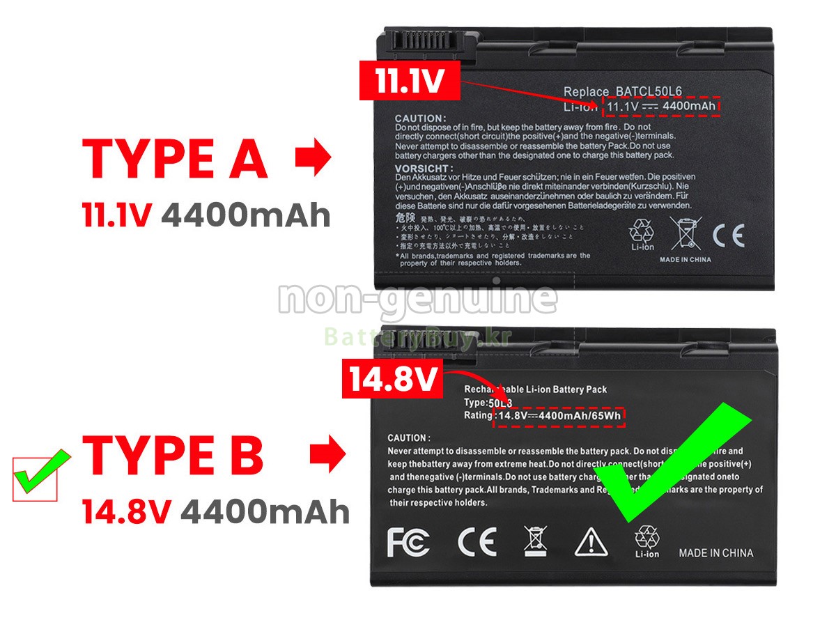 2 고객님의 원 Acer Aspire 5684 배터리의 전압과 용량이 당사 제품과의 일치여부를 확인 후 당사의 확대 이미지에서 인터페이스, 대체적인 모양의 일치 여부를 확인하십시오.