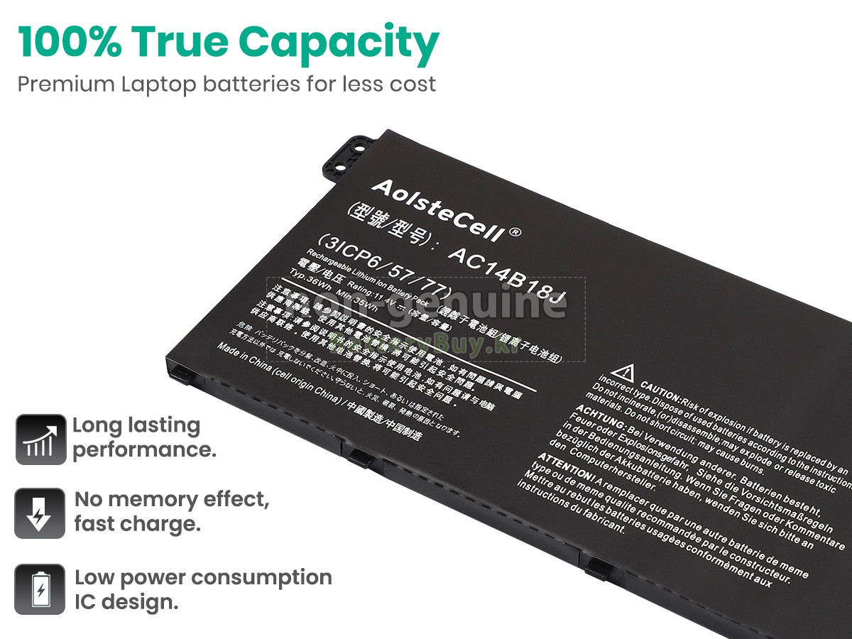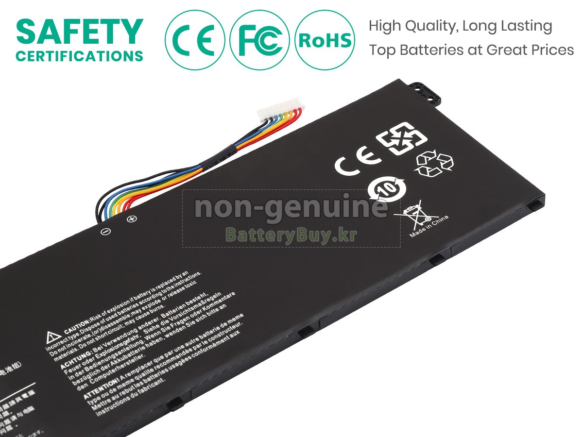 본 새로운 Acer Aspire ES1-332 대체용 배터리는 삼성, 파나소닉과 LG 등 오리지날 공장의 고품질 리튬이온셀을 적용하였고, 배터리의 케이스는 내용성 ABS플라스틱을 사용한 제품입니다. BatteryBuy.kr는 제품 안전성에 대해 요구가 엄격한 바 해당 Acer Aspire ES1-332 배터리 제품은 전부KC, CE, UL, ROHS, ISO 9001/9002 등 일련의 안전인증을 통과하여 국제표준에 부합되며 오리지날사의 규격과 100%로 호환가능하며 오리지널 Aspire ES1-332 배터리와 완전 매칭 심지어 초과 가능한 성능을 자랑하고 있습니다. 해당 Acer Aspire ES1-332 배터리의 충/방전 주기는 600회좌우인 바 최적의 배터리 라이프를 선사하고 있습니다.