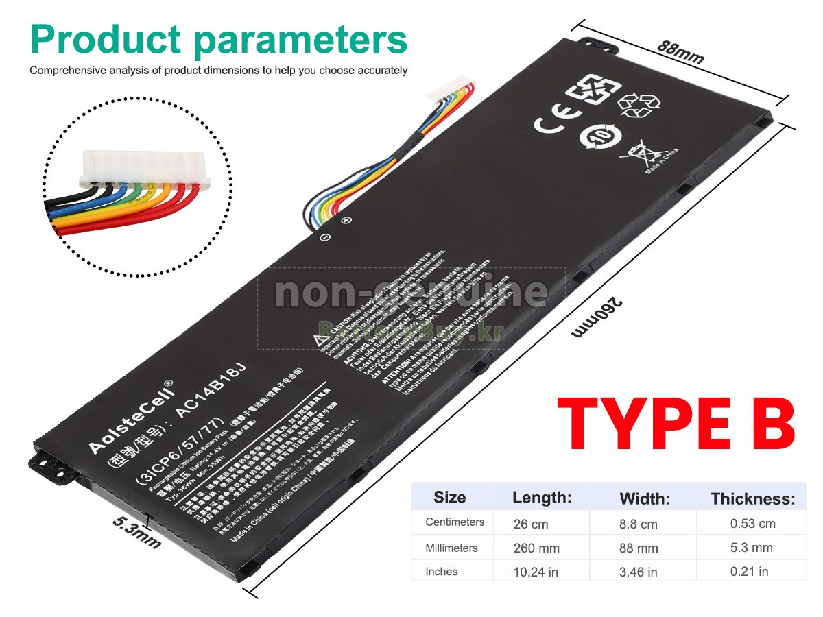 2 고객님의 원 Acer Aspire ES1-332 배터리의 전압과 용량이 당사 제품과의 일치여부를 확인 후 당사의 확대 이미지에서 인터페이스, 대체적인 모양의 일치 여부를 확인하십시오.