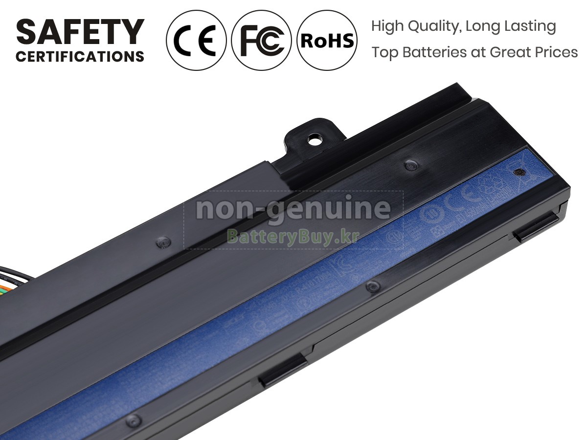 본 새로운 Acer Aspire V15 V5-591G 대체용 배터리는 삼성, 파나소닉과 LG 등 오리지날 공장의 고품질 리튬이온셀을 적용하였고, 배터리의 케이스는 내용성 ABS플라스틱을 사용한 제품입니다. BatteryBuy.kr는 제품 안전성에 대해 요구가 엄격한 바 해당 Acer Aspire V15 V5-591G 배터리 제품은 전부KC, CE, UL, ROHS, ISO 9001/9002 등 일련의 안전인증을 통과하여 국제표준에 부합되며 오리지날사의 규격과 100%로 호환가능하며 오리지널 Aspire V15 V5-591G 배터리와 완전 매칭 심지어 초과 가능한 성능을 자랑하고 있습니다. 해당 Acer Aspire V15 V5-591G 배터리의 충/방전 주기는 600회좌우인 바 최적의 배터리 라이프를 선사하고 있습니다.