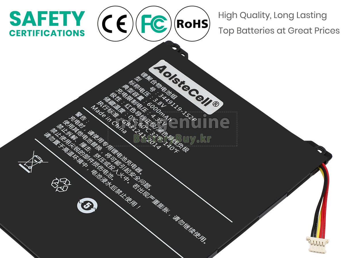 본 새로운 Alldocube IPLAY 20 대체용 배터리는 삼성, 파나소닉과 LG 등 오리지날 공장의 고품질 리튬이온셀을 적용하였고, 배터리의 케이스는 내용성 ABS플라스틱을 사용한 제품입니다. BatteryBuy.kr는 제품 안전성에 대해 요구가 엄격한 바 해당 Alldocube IPLAY 20 배터리 제품은 전부KC, CE, UL, ROHS, ISO 9001/9002 등 일련의 안전인증을 통과하여 국제표준에 부합되며 오리지날사의 규격과 100%로 호환가능하며 오리지널 IPLAY 20 배터리와 완전 매칭 심지어 초과 가능한 성능을 자랑하고 있습니다. 해당 Alldocube IPLAY 20 배터리의 충/방전 주기는 600회좌우인 바 최적의 배터리 라이프를 선사하고 있습니다.
