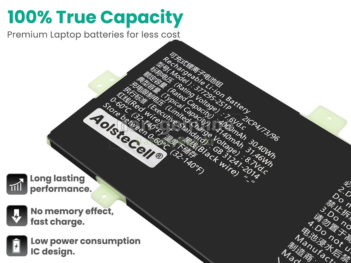 고품질 AolsteCell 377295-2S1P 대체 배터리 (30.4Wh, 2셀)