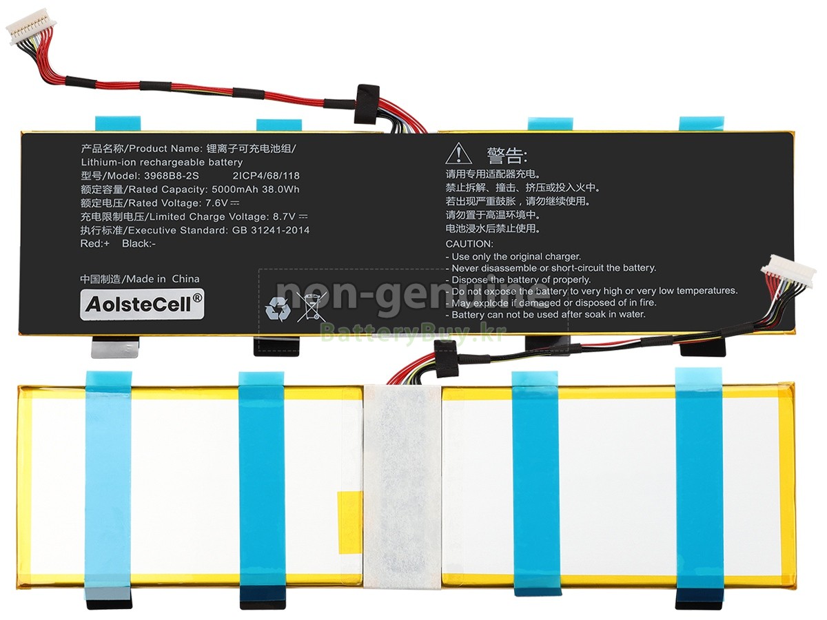 본 새로운 AolsteCell 3968B8-2S 대체용 배터리는 삼성, 파나소닉과 LG 등 오리지날 공장의 고품질 리튬이온셀을 적용하였고, 배터리의 케이스는 내용성 ABS플라스틱을 사용한 제품입니다. BatteryBuy.kr는 제품 안전성에 대해 요구가 엄격한 바 해당 AolsteCell 3968B8-2S 배터리 제품은 전부KC, CE, UL, ROHS, ISO 9001/9002 등 일련의 안전인증을 통과하여 국제표준에 부합되며 오리지날사의 규격과 100%로 호환가능하며 오리지널 3968B8-2S 배터리와 완전 매칭 심지어 초과 가능한 성능을 자랑하고 있습니다. 해당 AolsteCell 3968B8-2S 배터리의 충/방전 주기는 600회좌우인 바 최적의 배터리 라이프를 선사하고 있습니다.