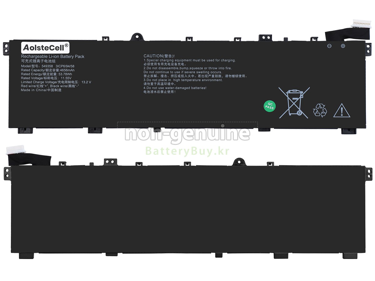 본 새로운 AolsteCell 549358 대체용 배터리는 삼성, 파나소닉과 LG 등 오리지날 공장의 고품질 리튬이온셀을 적용하였고, 배터리의 케이스는 내용성 ABS플라스틱을 사용한 제품입니다. BatteryBuy.kr는 제품 안전성에 대해 요구가 엄격한 바 해당 AolsteCell 549358 배터리 제품은 전부KC, CE, UL, ROHS, ISO 9001/9002 등 일련의 안전인증을 통과하여 국제표준에 부합되며 오리지날사의 규격과 100%로 호환가능하며 오리지널 549358 배터리와 완전 매칭 심지어 초과 가능한 성능을 자랑하고 있습니다. 해당 AolsteCell 549358 배터리의 충/방전 주기는 600회좌우인 바 최적의 배터리 라이프를 선사하고 있습니다.
