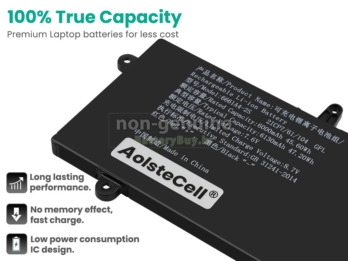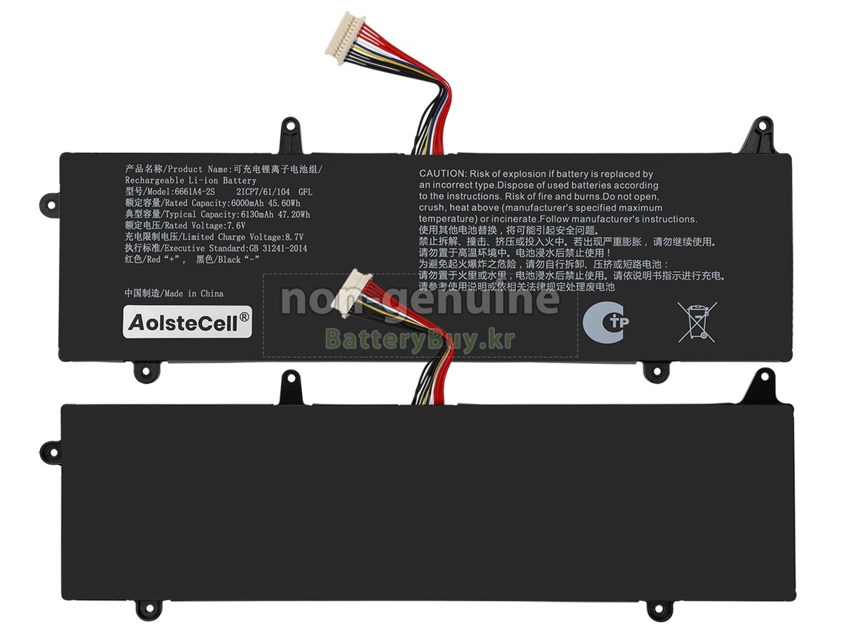 본 새로운 AolsteCell 6661A4-2S 대체용 배터리는 삼성, 파나소닉과 LG 등 오리지날 공장의 고품질 리튬이온셀을 적용하였고, 배터리의 케이스는 내용성 ABS플라스틱을 사용한 제품입니다. BatteryBuy.kr는 제품 안전성에 대해 요구가 엄격한 바 해당 AolsteCell 6661A4-2S 배터리 제품은 전부KC, CE, UL, ROHS, ISO 9001/9002 등 일련의 안전인증을 통과하여 국제표준에 부합되며 오리지날사의 규격과 100%로 호환가능하며 오리지널 6661A4-2S 배터리와 완전 매칭 심지어 초과 가능한 성능을 자랑하고 있습니다. 해당 AolsteCell 6661A4-2S 배터리의 충/방전 주기는 600회좌우인 바 최적의 배터리 라이프를 선사하고 있습니다.