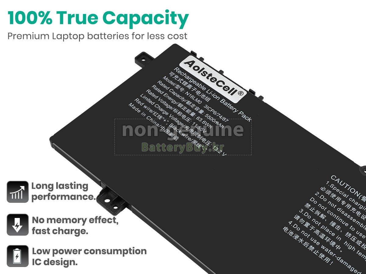 본 새로운 AolsteCell N16LM0 대체용 배터리는 삼성, 파나소닉과 LG 등 오리지날 공장의 고품질 리튬이온셀을 적용하였고, 배터리의 케이스는 내용성 ABS플라스틱을 사용한 제품입니다. BatteryBuy.kr는 제품 안전성에 대해 요구가 엄격한 바 해당 AolsteCell N16LM0 배터리 제품은 전부KC, CE, UL, ROHS, ISO 9001/9002 등 일련의 안전인증을 통과하여 국제표준에 부합되며 오리지날사의 규격과 100%로 호환가능하며 오리지널 N16LM0 배터리와 완전 매칭 심지어 초과 가능한 성능을 자랑하고 있습니다. 해당 AolsteCell N16LM0 배터리의 충/방전 주기는 600회좌우인 바 최적의 배터리 라이프를 선사하고 있습니다.