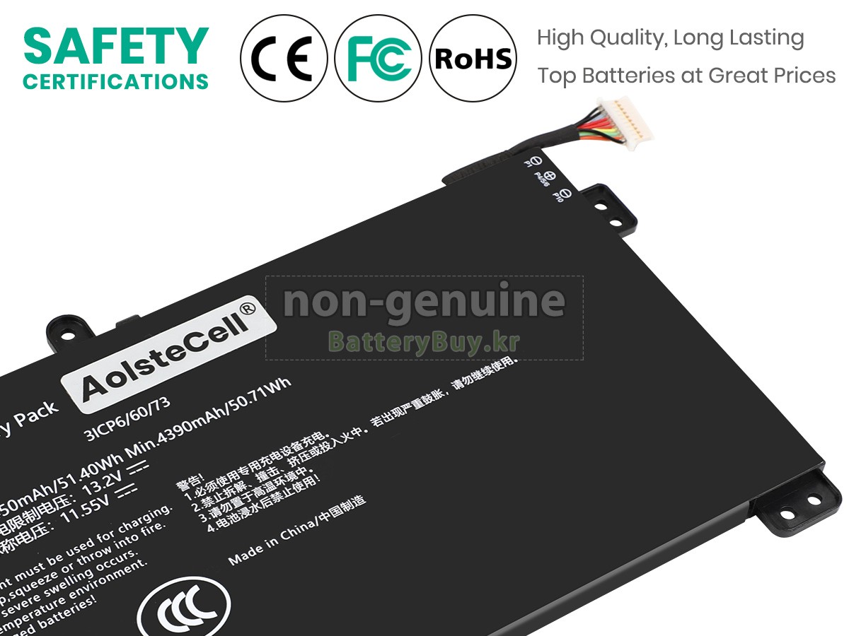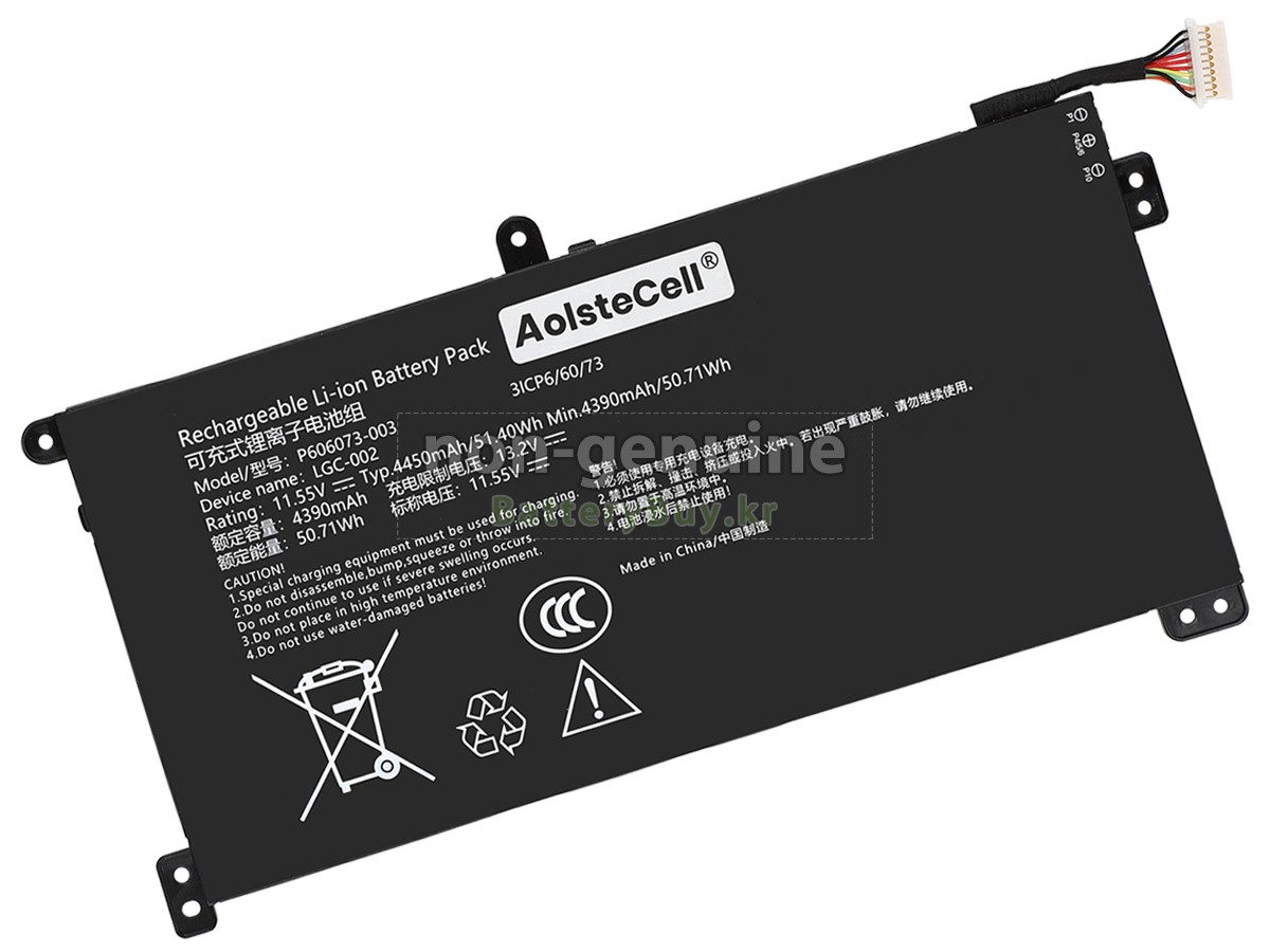본 새로운 AolsteCell P606073-003 대체용 배터리는 삼성, 파나소닉과 LG 등 오리지날 공장의 고품질 리튬이온셀을 적용하였고, 배터리의 케이스는 내용성 ABS플라스틱을 사용한 제품입니다. BatteryBuy.kr는 제품 안전성에 대해 요구가 엄격한 바 해당 AolsteCell P606073-003 배터리 제품은 전부KC, CE, UL, ROHS, ISO 9001/9002 등 일련의 안전인증을 통과하여 국제표준에 부합되며 오리지날사의 규격과 100%로 호환가능하며 오리지널 P606073-003 배터리와 완전 매칭 심지어 초과 가능한 성능을 자랑하고 있습니다. 해당 AolsteCell P606073-003 배터리의 충/방전 주기는 600회좌우인 바 최적의 배터리 라이프를 선사하고 있습니다.