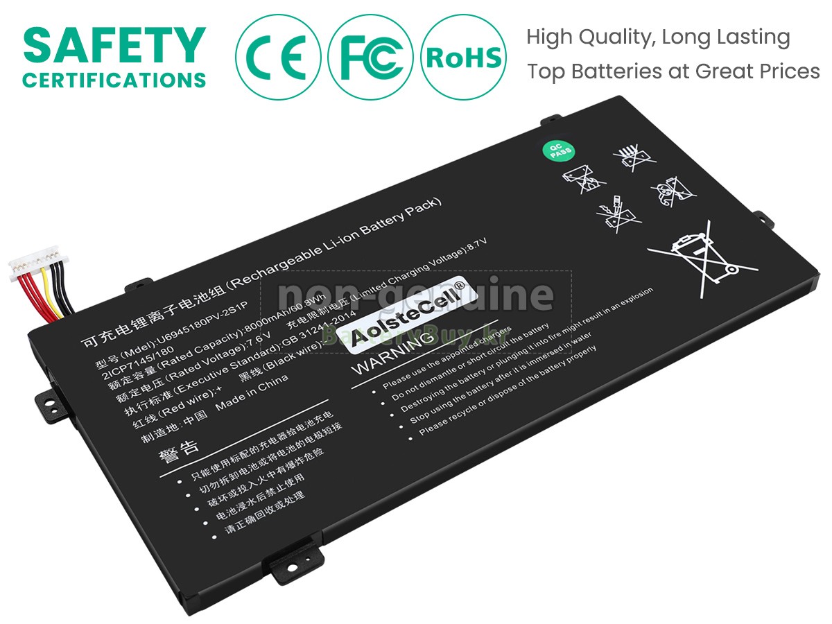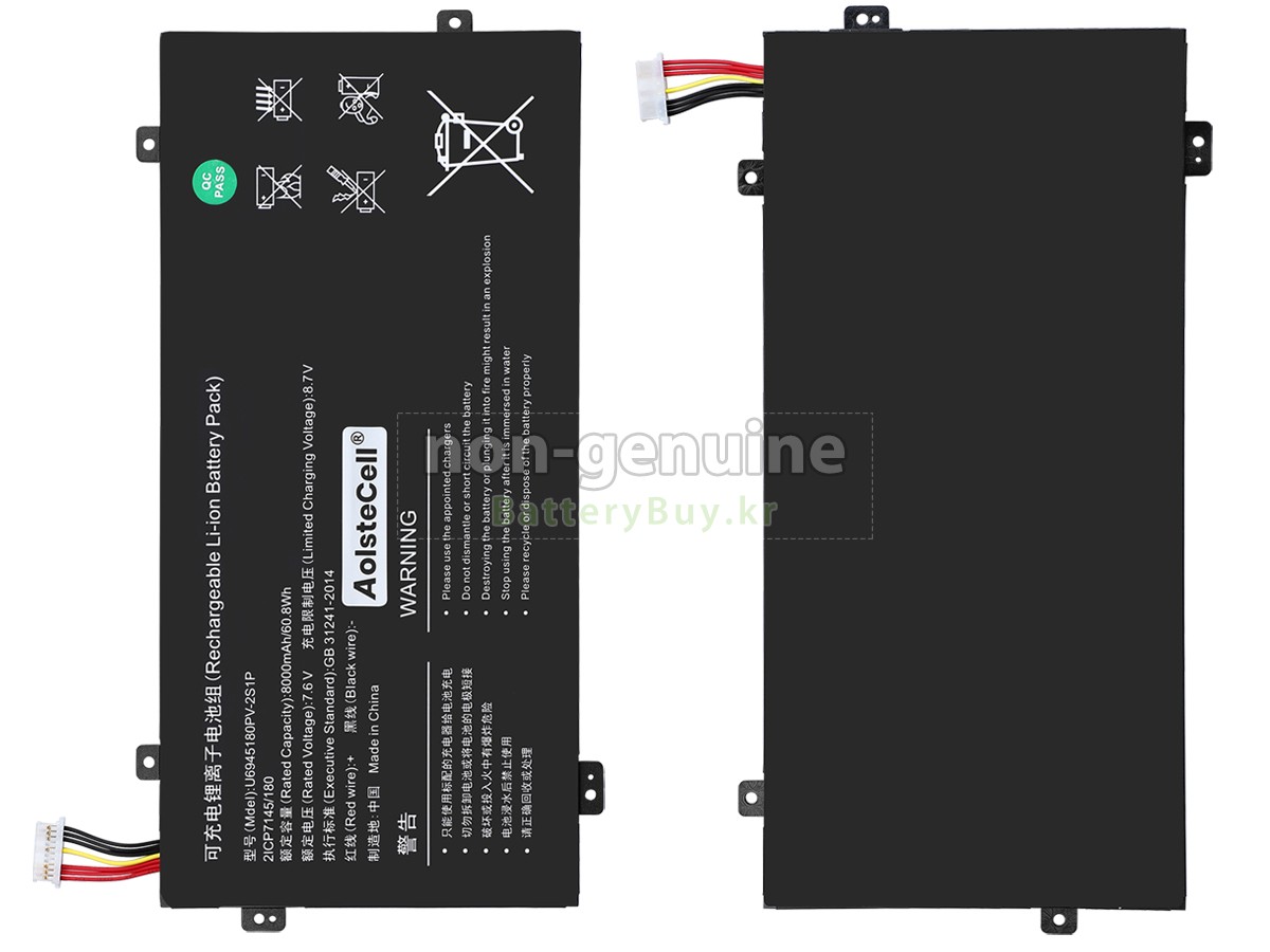 본 새로운 AolsteCell U6945180PV-2S1P 대체용 배터리는 삼성, 파나소닉과 LG 등 오리지날 공장의 고품질 리튬이온셀을 적용하였고, 배터리의 케이스는 내용성 ABS플라스틱을 사용한 제품입니다. BatteryBuy.kr는 제품 안전성에 대해 요구가 엄격한 바 해당 AolsteCell U6945180PV-2S1P 배터리 제품은 전부KC, CE, UL, ROHS, ISO 9001/9002 등 일련의 안전인증을 통과하여 국제표준에 부합되며 오리지날사의 규격과 100%로 호환가능하며 오리지널 U6945180PV-2S1P 배터리와 완전 매칭 심지어 초과 가능한 성능을 자랑하고 있습니다. 해당 AolsteCell U6945180PV-2S1P 배터리의 충/방전 주기는 600회좌우인 바 최적의 배터리 라이프를 선사하고 있습니다.