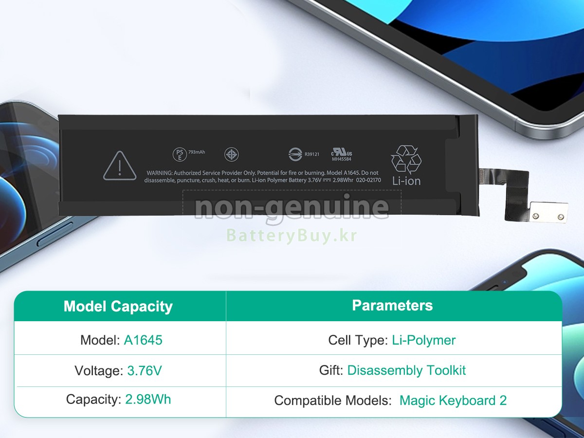 고품질 Apple A1645 대체 배터리 (2.98Wh, 1셀)