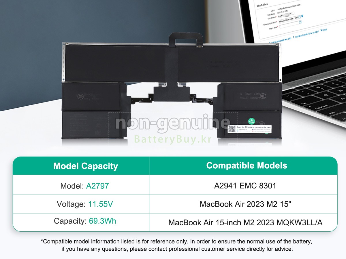 본 새로운 Apple A2941 EMC 8301 대체용 배터리는 삼성, 파나소닉과 LG 등 오리지날 공장의 고품질 리튬이온셀을 적용하였고, 배터리의 케이스는 내용성 ABS플라스틱을 사용한 제품입니다. BatteryBuy.kr는 제품 안전성에 대해 요구가 엄격한 바 해당 Apple A2941 EMC 8301 배터리 제품은 전부KC, CE, UL, ROHS, ISO 9001/9002 등 일련의 안전인증을 통과하여 국제표준에 부합되며 오리지날사의 규격과 100%로 호환가능하며 오리지널 A2941 EMC 8301 배터리와 완전 매칭 심지어 초과 가능한 성능을 자랑하고 있습니다. 해당 Apple A2941 EMC 8301 배터리의 충/방전 주기는 600회좌우인 바 최적의 배터리 라이프를 선사하고 있습니다.