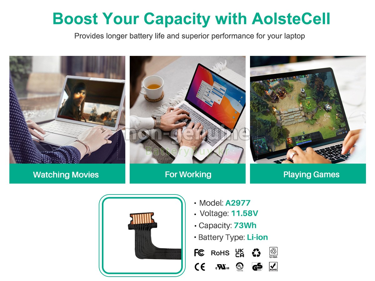 2 고객님의 원 Apple MacBook Pro 14-inch M3 MAX Late 2023 배터리의 전압과 용량이 당사 제품과의 일치여부를 확인 후 당사의 확대 이미지에서 인터페이스, 대체적인 모양의 일치 여부를 확인하십시오.