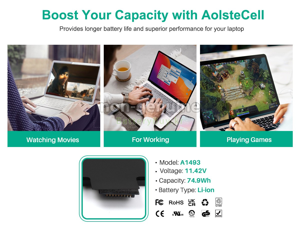 본 새로운 Apple MacBook Pro Core I7 2.8GHZ 13.3 inch Retina A1502(EMC 2678) 대체용 배터리는 삼성, 파나소닉과 LG 등 오리지날 공장의 고품질 리튬이온셀을 적용하였고, 배터리의 케이스는 내용성 ABS플라스틱을 사용한 제품입니다. BatteryBuy.kr는 제품 안전성에 대해 요구가 엄격한 바 해당 Apple MacBook Pro Core I7 2.8GHZ 13.3 inch Retina A1502(EMC 2678) 배터리 제품은 전부KC, CE, UL, ROHS, ISO 9001/9002 등 일련의 안전인증을 통과하여 국제표준에 부합되며 오리지날사의 규격과 100%로 호환가능하며 오리지널 MacBook Pro Core I7 2.8GHZ 13.3 inch Retina A1502(EMC 2678) 배터리와 완전 매칭 심지어 초과 가능한 성능을 자랑하고 있습니다. 해당 Apple MacBook Pro Core I7 2.8GHZ 13.3 inch Retina A1502(EMC 2678) 배터리의 충/방전 주기는 600회좌우인 바 최적의 배터리 라이프를 선사하고 있습니다.