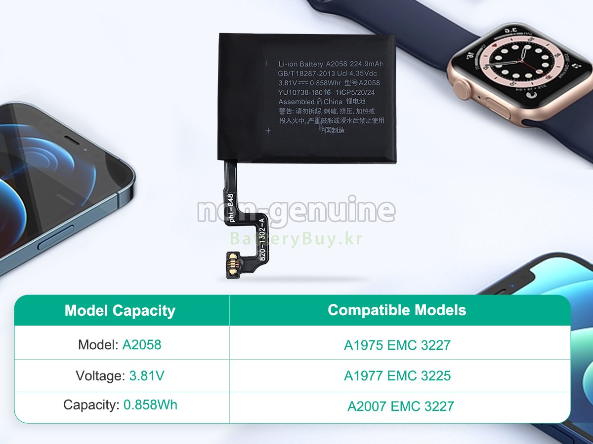 2 고객님의 원 Apple WATCH Series 4 NIKE+ GPS 40MM 손목시계 배터리의 전압과 용량이 당사 제품과의 일치여부를 확인 후 당사의 확대 이미지에서 인터페이스, 대체적인 모양의 일치 여부를 확인하십시오.