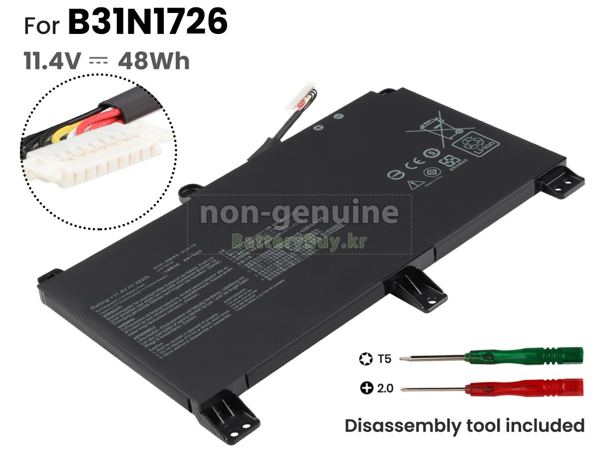 2 고객님의 원 Asus B31N1726-LONG 배터리의 전압과 용량이 당사 제품과의 일치여부를 확인 후 당사의 확대 이미지에서 인터페이스, 대체적인 모양의 일치 여부를 확인하십시오.