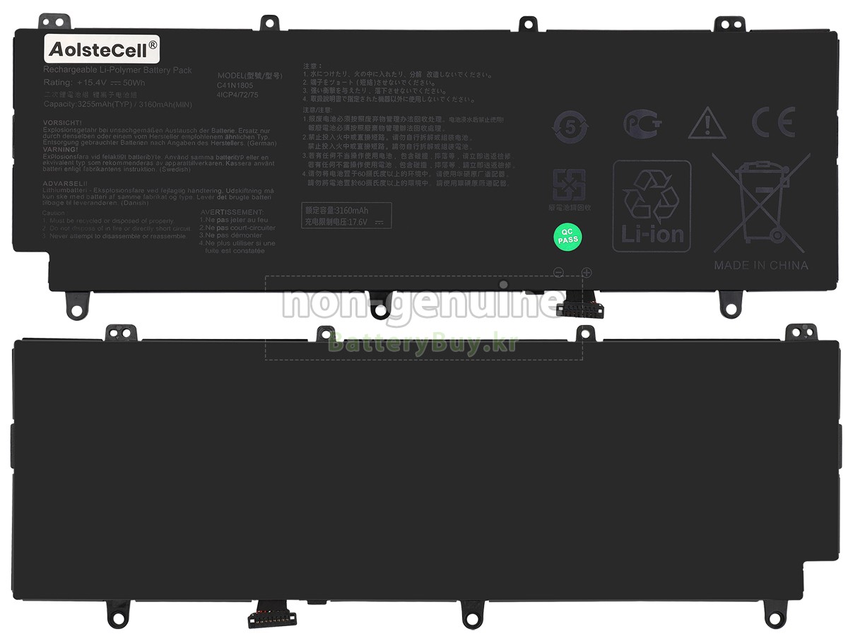 2 고객님의 원 Asus Rog ZEPHYRUS S GX531GM-ES037T 배터리의 전압과 용량이 당사 제품과의 일치여부를 확인 후 당사의 확대 이미지에서 인터페이스, 대체적인 모양의 일치 여부를 확인하십시오.