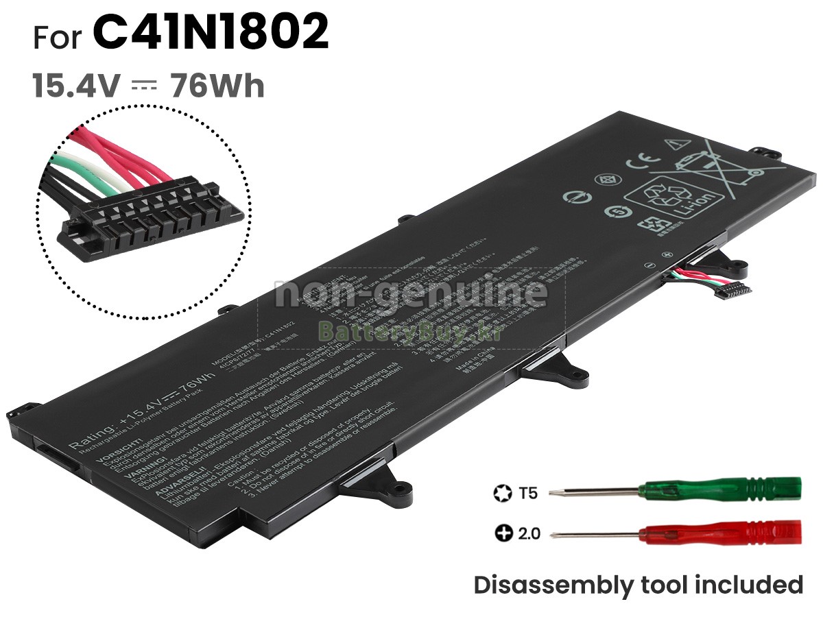 2 고객님의 원 Asus Rog ZEPHYRUS S GX735GXR 배터리의 전압과 용량이 당사 제품과의 일치여부를 확인 후 당사의 확대 이미지에서 인터페이스, 대체적인 모양의 일치 여부를 확인하십시오.