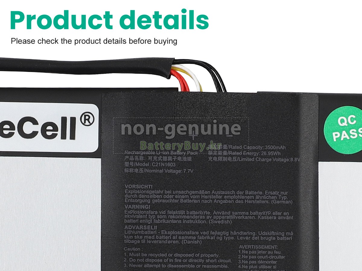 2 고객님의 원 Asus T304UA 배터리의 전압과 용량이 당사 제품과의 일치여부를 확인 후 당사의 확대 이미지에서 인터페이스, 대체적인 모양의 일치 여부를 확인하십시오.
