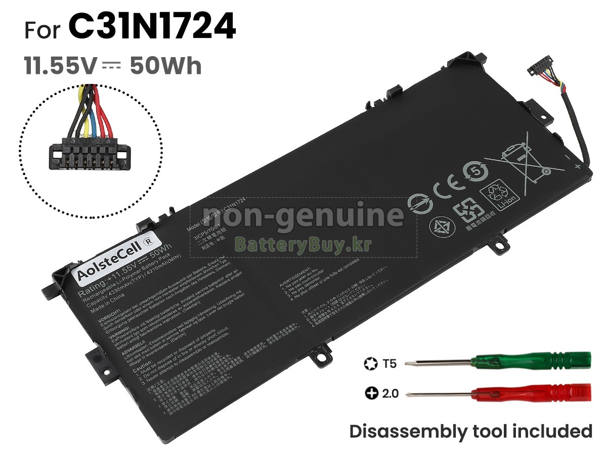 2 고객님의 원 Asus ZenBook 13 UX331FAL 배터리의 전압과 용량이 당사 제품과의 일치여부를 확인 후 당사의 확대 이미지에서 인터페이스, 대체적인 모양의 일치 여부를 확인하십시오.
