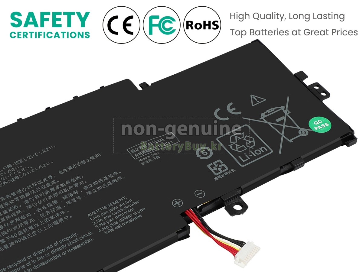 본 새로운 Asus ZenBook 14 RX433FA 대체용 배터리는 삼성, 파나소닉과 LG 등 오리지날 공장의 고품질 리튬이온셀을 적용하였고, 배터리의 케이스는 내용성 ABS플라스틱을 사용한 제품입니다. BatteryBuy.kr는 제품 안전성에 대해 요구가 엄격한 바 해당 Asus ZenBook 14 RX433FA 배터리 제품은 전부KC, CE, UL, ROHS, ISO 9001/9002 등 일련의 안전인증을 통과하여 국제표준에 부합되며 오리지날사의 규격과 100%로 호환가능하며 오리지널 ZenBook 14 RX433FA 배터리와 완전 매칭 심지어 초과 가능한 성능을 자랑하고 있습니다. 해당 Asus ZenBook 14 RX433FA 배터리의 충/방전 주기는 600회좌우인 바 최적의 배터리 라이프를 선사하고 있습니다.