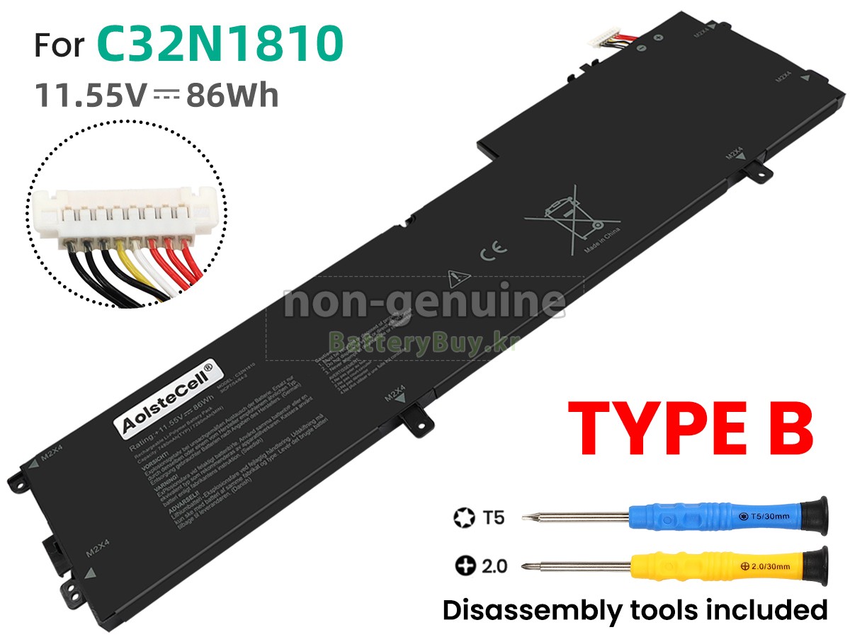 2 고객님의 원 Asus ZenBook Flip 15 UX562FDX-A1071T 배터리의 전압과 용량이 당사 제품과의 일치여부를 확인 후 당사의 확대 이미지에서 인터페이스, 대체적인 모양의 일치 여부를 확인하십시오.