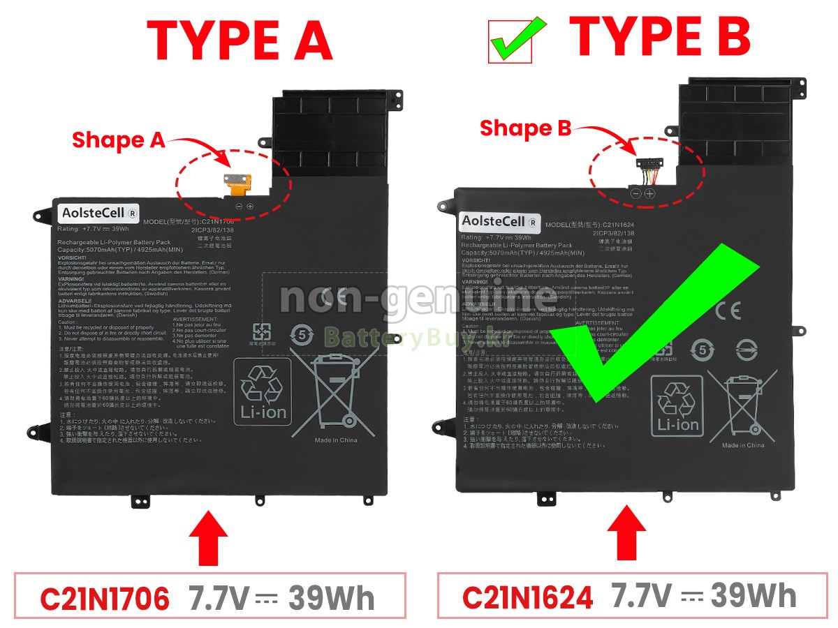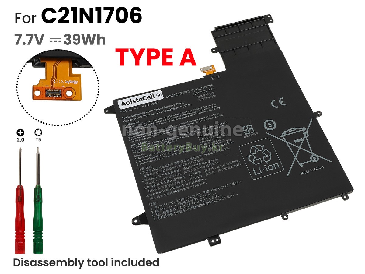 2 고객님의 원 Asus ZenBook Flip S UX370UA-C4193T 배터리의 전압과 용량이 당사 제품과의 일치여부를 확인 후 당사의 확대 이미지에서 인터페이스, 대체적인 모양의 일치 여부를 확인하십시오.