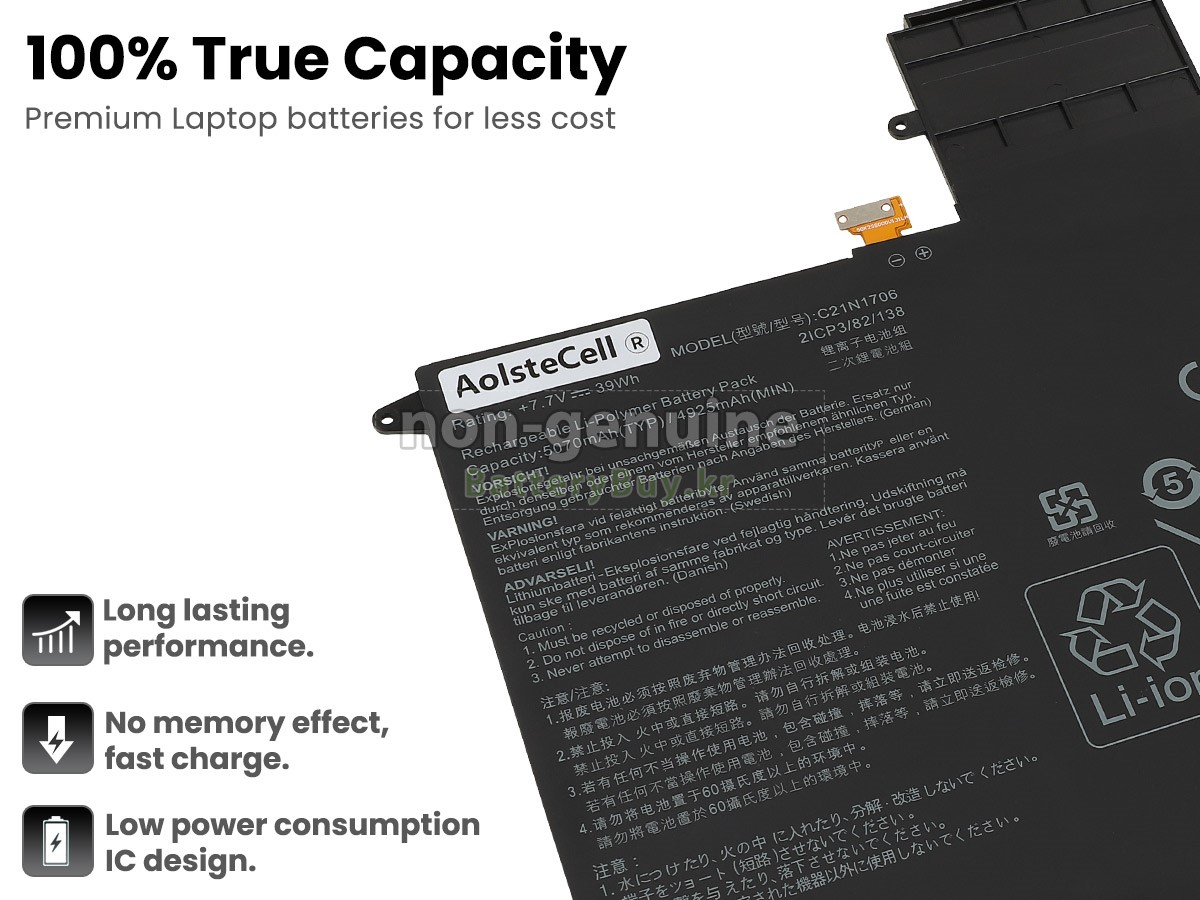 고품질 Asus ZenBook Flip S UX370UA-C4193T 대체 배터리 (39Wh, 2셀)