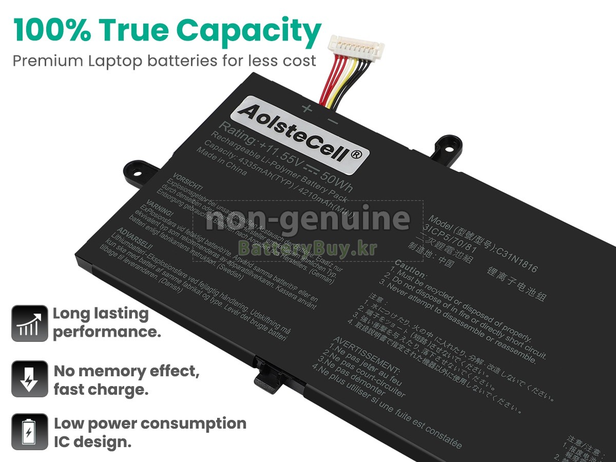 본 새로운 Asus ZenBook Flip UX362FA-EL206R 대체용 배터리는 삼성, 파나소닉과 LG 등 오리지날 공장의 고품질 리튬이온셀을 적용하였고, 배터리의 케이스는 내용성 ABS플라스틱을 사용한 제품입니다. BatteryBuy.kr는 제품 안전성에 대해 요구가 엄격한 바 해당 Asus ZenBook Flip UX362FA-EL206R 배터리 제품은 전부KC, CE, UL, ROHS, ISO 9001/9002 등 일련의 안전인증을 통과하여 국제표준에 부합되며 오리지날사의 규격과 100%로 호환가능하며 오리지널 ZenBook Flip UX362FA-EL206R 배터리와 완전 매칭 심지어 초과 가능한 성능을 자랑하고 있습니다. 해당 Asus ZenBook Flip UX362FA-EL206R 배터리의 충/방전 주기는 600회좌우인 바 최적의 배터리 라이프를 선사하고 있습니다.