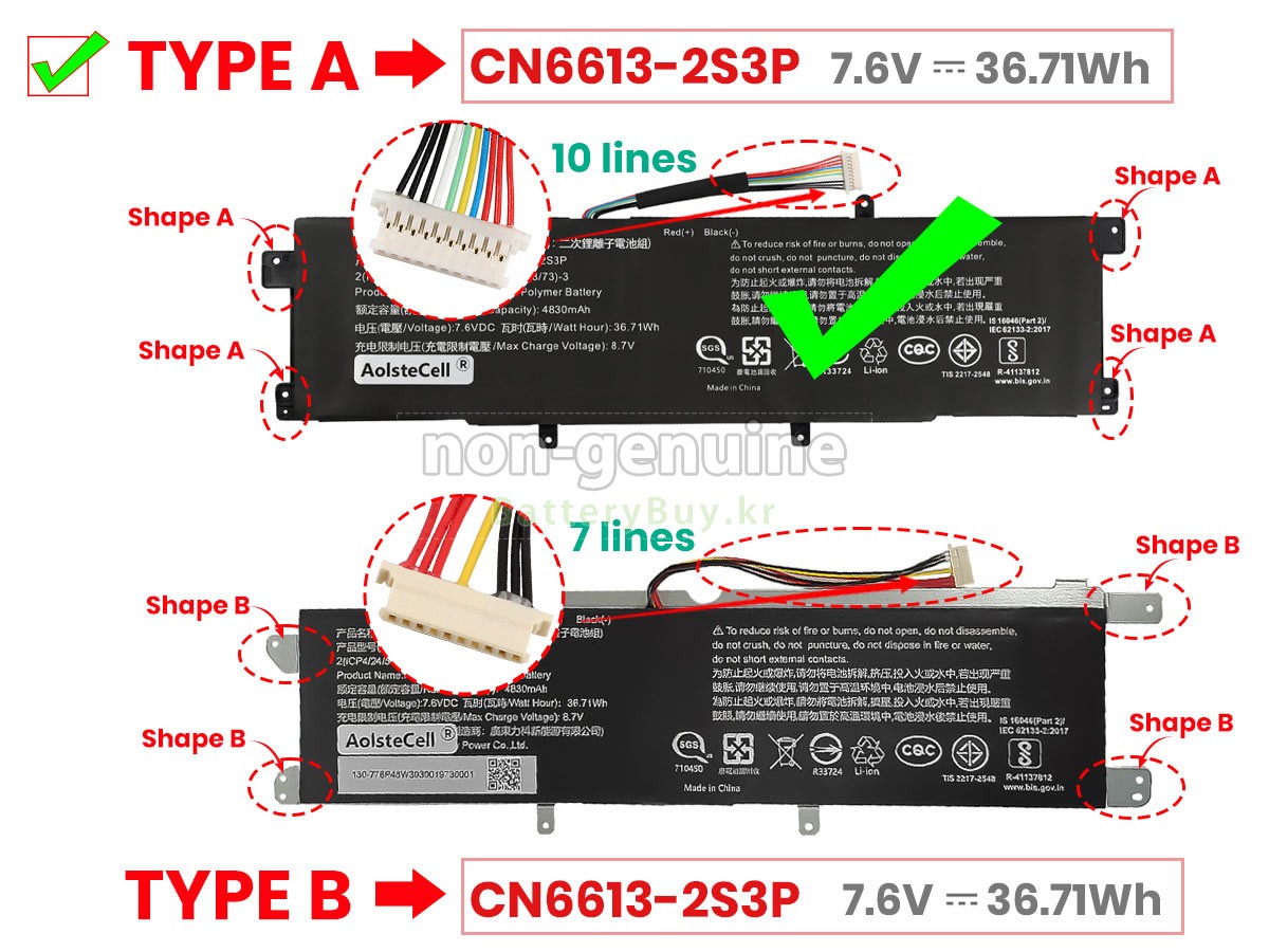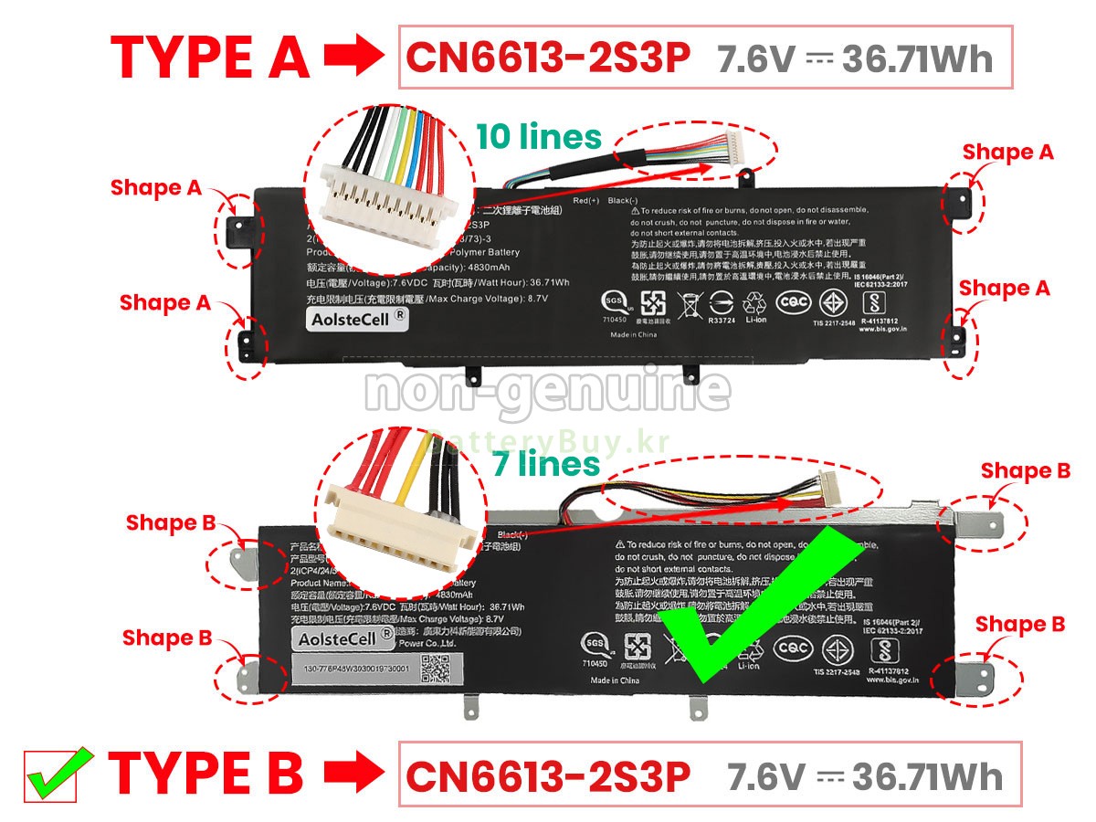 2 고객님의 원 Avita NS14A2 LIBER 13.3 배터리의 전압과 용량이 당사 제품과의 일치여부를 확인 후 당사의 확대 이미지에서 인터페이스, 대체적인 모양의 일치 여부를 확인하십시오.