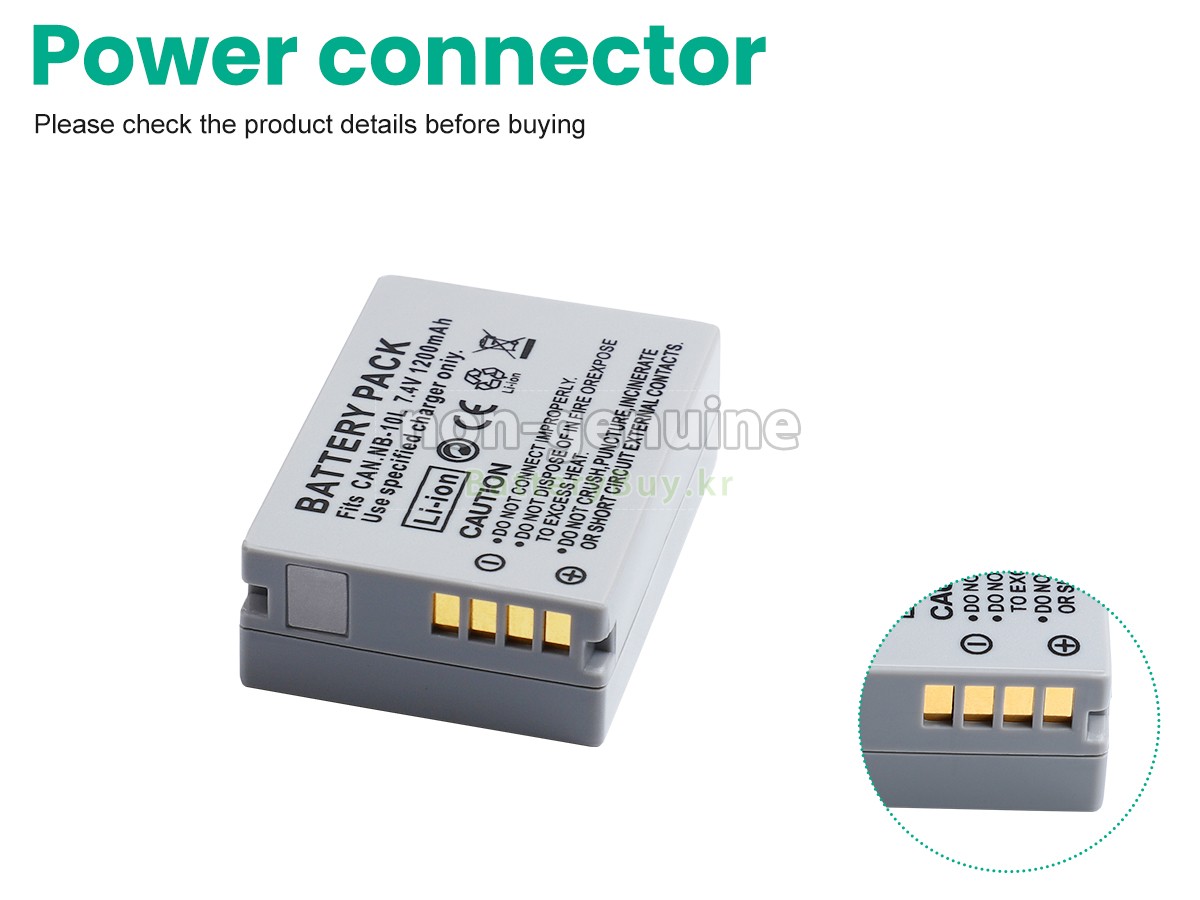 2 고객님의 원 Canon POWERSHOT SX40HS 배터리의 전압과 용량이 당사 제품과의 일치여부를 확인 후 당사의 확대 이미지에서 인터페이스, 대체적인 모양의 일치 여부를 확인하십시오.