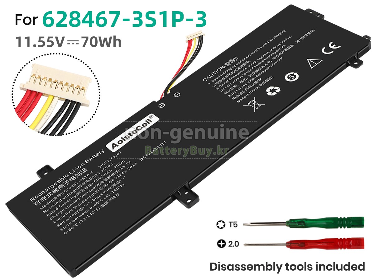 본 새로운 CHUWI 628467-3S1P-3(3ICP7/85/67) 대체용 배터리는 삼성, 파나소닉과 LG 등 오리지날 공장의 고품질 리튬이온셀을 적용하였고, 배터리의 케이스는 내용성 ABS플라스틱을 사용한 제품입니다. BatteryBuy.kr는 제품 안전성에 대해 요구가 엄격한 바 해당 CHUWI 628467-3S1P-3(3ICP7/85/67) 배터리 제품은 전부KC, CE, UL, ROHS, ISO 9001/9002 등 일련의 안전인증을 통과하여 국제표준에 부합되며 오리지날사의 규격과 100%로 호환가능하며 오리지널 628467-3S1P-3(3ICP7/85/67) 배터리와 완전 매칭 심지어 초과 가능한 성능을 자랑하고 있습니다. 해당 CHUWI 628467-3S1P-3(3ICP7/85/67) 배터리의 충/방전 주기는 600회좌우인 바 최적의 배터리 라이프를 선사하고 있습니다.