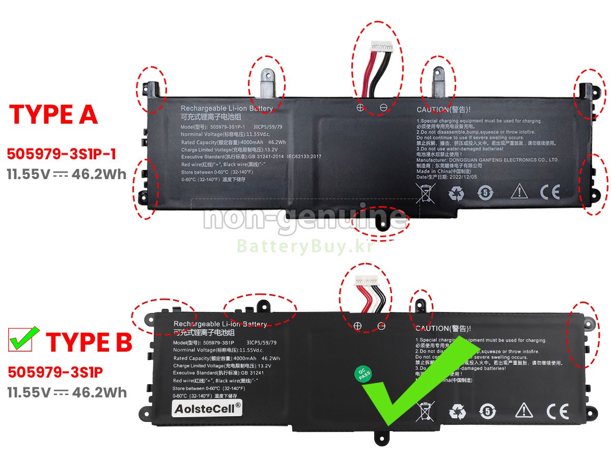 2 고객님의 원 CHUWI COREBOOK X PRO CW1536 배터리의 전압과 용량이 당사 제품과의 일치여부를 확인 후 당사의 확대 이미지에서 인터페이스, 대체적인 모양의 일치 여부를 확인하십시오.