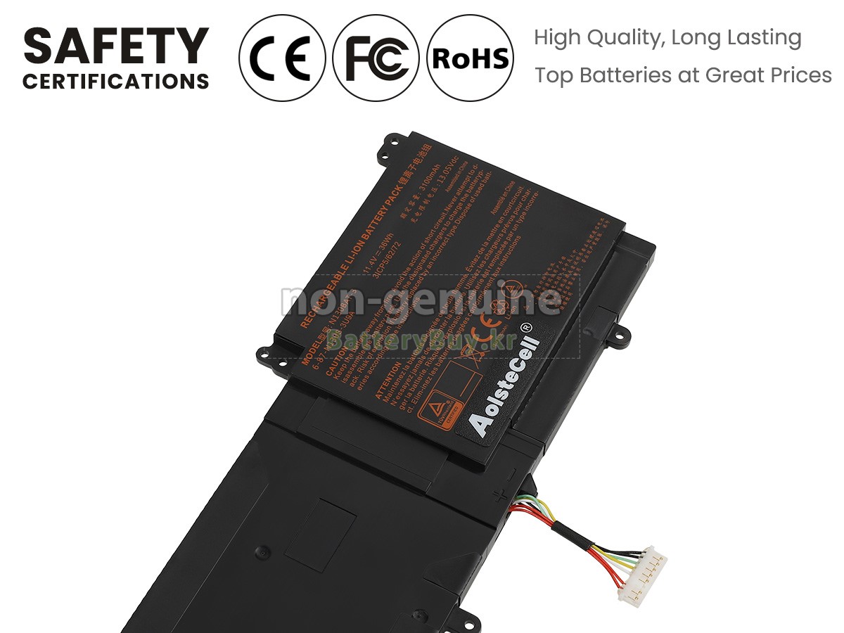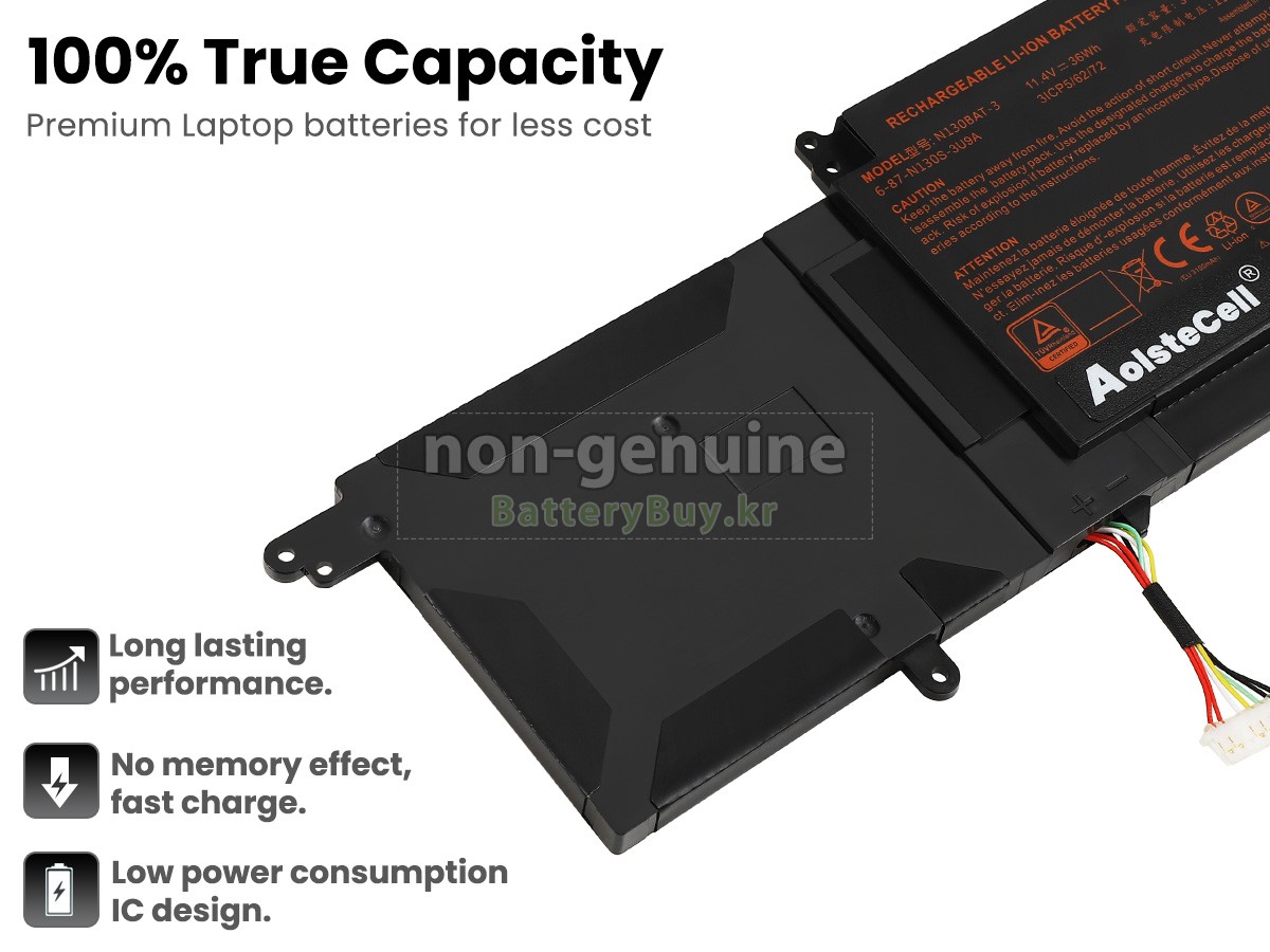 본 새로운 Clevo 6-87-N130S-3U9A 대체용 배터리는 삼성, 파나소닉과 LG 등 오리지날 공장의 고품질 리튬이온셀을 적용하였고, 배터리의 케이스는 내용성 ABS플라스틱을 사용한 제품입니다. BatteryBuy.kr는 제품 안전성에 대해 요구가 엄격한 바 해당 Clevo 6-87-N130S-3U9A 배터리 제품은 전부KC, CE, UL, ROHS, ISO 9001/9002 등 일련의 안전인증을 통과하여 국제표준에 부합되며 오리지날사의 규격과 100%로 호환가능하며 오리지널 6-87-N130S-3U9A 배터리와 완전 매칭 심지어 초과 가능한 성능을 자랑하고 있습니다. 해당 Clevo 6-87-N130S-3U9A 배터리의 충/방전 주기는 600회좌우인 바 최적의 배터리 라이프를 선사하고 있습니다.