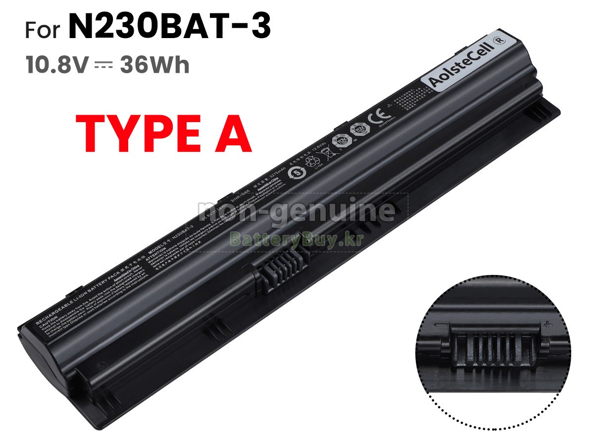 2 고객님의 원 Clevo N230BAT-6 배터리의 전압과 용량이 당사 제품과의 일치여부를 확인 후 당사의 확대 이미지에서 인터페이스, 대체적인 모양의 일치 여부를 확인하십시오.