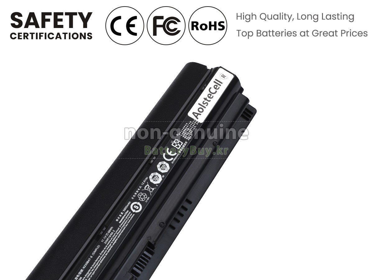 본 새로운 Clevo N230BAT-6 대체용 배터리는 삼성, 파나소닉과 LG 등 오리지날 공장의 고품질 리튬이온셀을 적용하였고, 배터리의 케이스는 내용성 ABS플라스틱을 사용한 제품입니다. BatteryBuy.kr는 제품 안전성에 대해 요구가 엄격한 바 해당 Clevo N230BAT-6 배터리 제품은 전부KC, CE, UL, ROHS, ISO 9001/9002 등 일련의 안전인증을 통과하여 국제표준에 부합되며 오리지날사의 규격과 100%로 호환가능하며 오리지널 N230BAT-6 배터리와 완전 매칭 심지어 초과 가능한 성능을 자랑하고 있습니다. 해당 Clevo N230BAT-6 배터리의 충/방전 주기는 600회좌우인 바 최적의 배터리 라이프를 선사하고 있습니다.