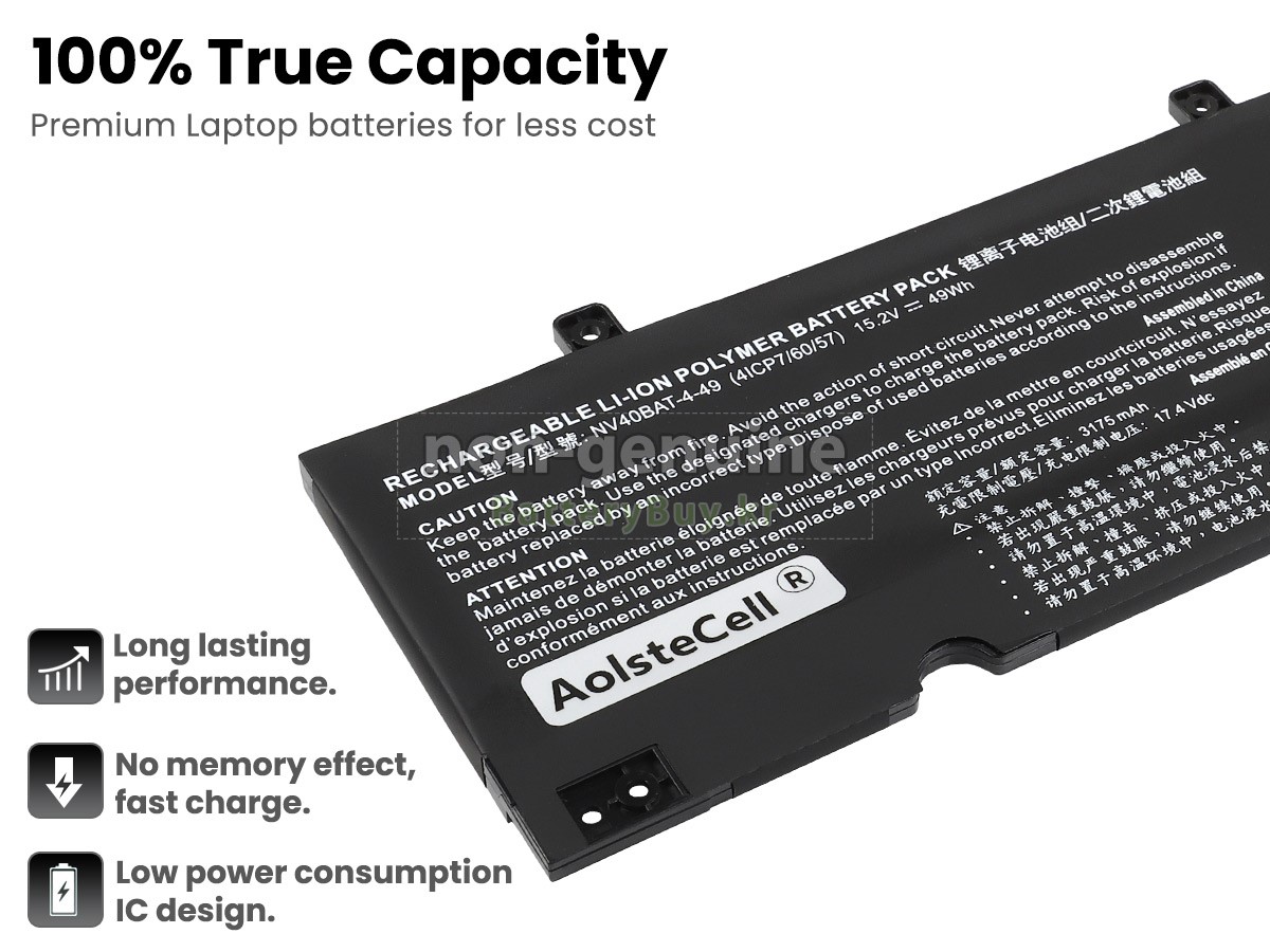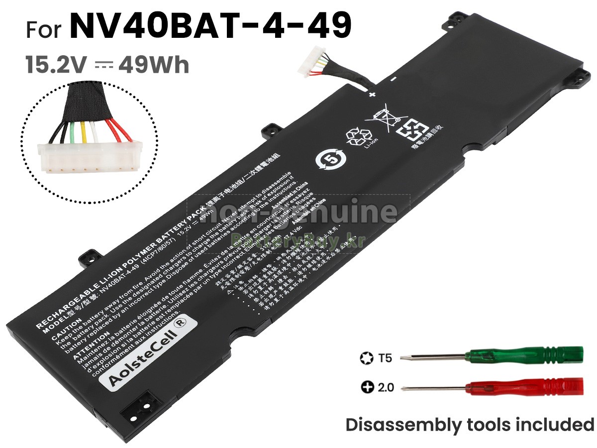 본 새로운 Clevo NV4X 대체용 배터리는 삼성, 파나소닉과 LG 등 오리지날 공장의 고품질 리튬이온셀을 적용하였고, 배터리의 케이스는 내용성 ABS플라스틱을 사용한 제품입니다. BatteryBuy.kr는 제품 안전성에 대해 요구가 엄격한 바 해당 Clevo NV4X 배터리 제품은 전부KC, CE, UL, ROHS, ISO 9001/9002 등 일련의 안전인증을 통과하여 국제표준에 부합되며 오리지날사의 규격과 100%로 호환가능하며 오리지널 NV4X 배터리와 완전 매칭 심지어 초과 가능한 성능을 자랑하고 있습니다. 해당 Clevo NV4X 배터리의 충/방전 주기는 600회좌우인 바 최적의 배터리 라이프를 선사하고 있습니다.