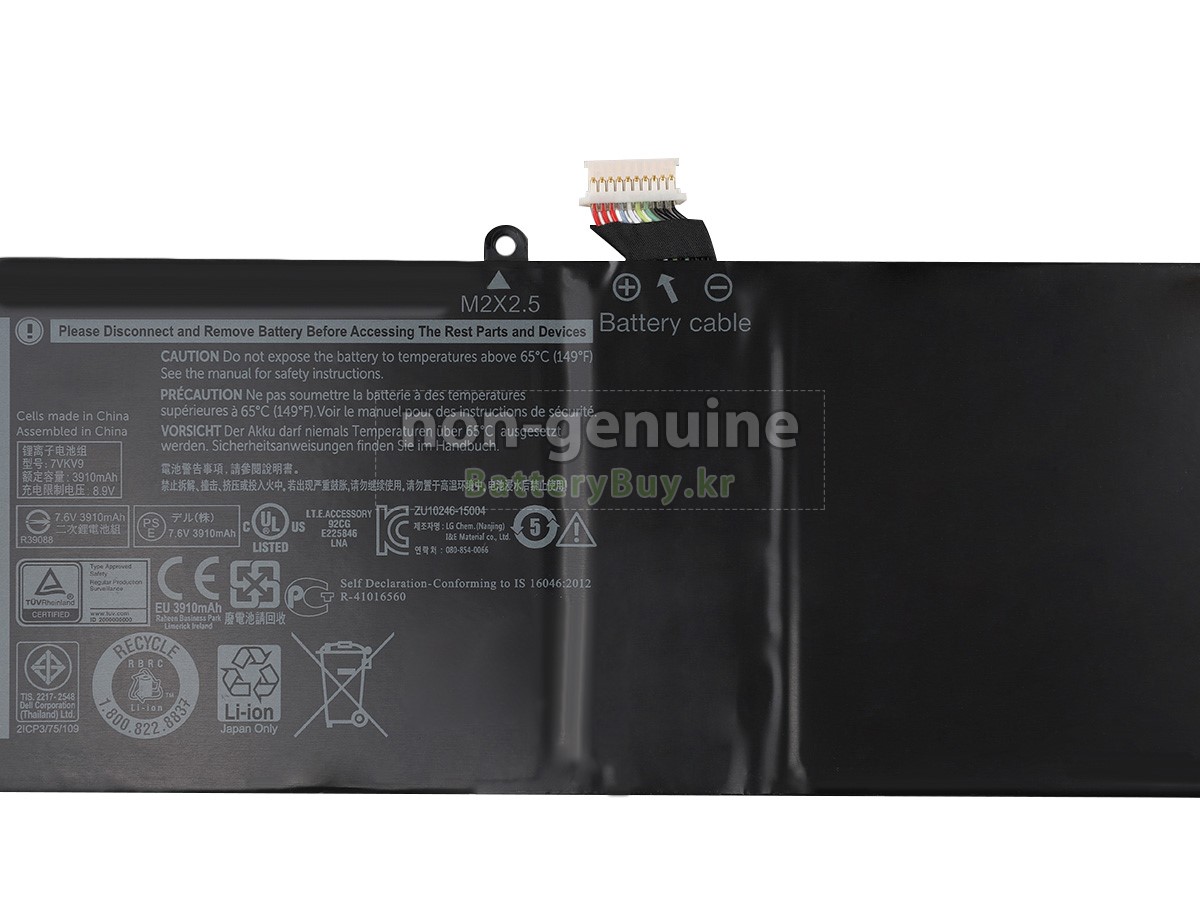 본 새로운 Dell 7VKV9 대체용 배터리는 삼성, 파나소닉과 LG 등 오리지날 공장의 고품질 리튬이온셀을 적용하였고, 배터리의 케이스는 내용성 ABS플라스틱을 사용한 제품입니다. BatteryBuy.kr는 제품 안전성에 대해 요구가 엄격한 바 해당 Dell 7VKV9 배터리 제품은 전부KC, CE, UL, ROHS, ISO 9001/9002 등 일련의 안전인증을 통과하여 국제표준에 부합되며 오리지날사의 규격과 100%로 호환가능하며 오리지널 7VKV9 배터리와 완전 매칭 심지어 초과 가능한 성능을 자랑하고 있습니다. 해당 Dell 7VKV9 배터리의 충/방전 주기는 600회좌우인 바 최적의 배터리 라이프를 선사하고 있습니다.