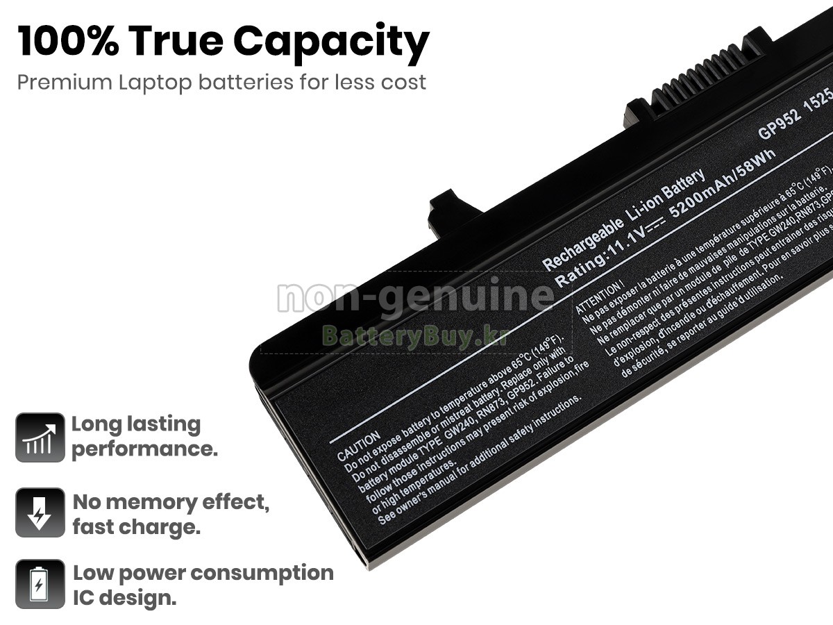 본 새로운 Dell Inspiron 1546 대체용 배터리는 삼성, 파나소닉과 LG 등 오리지날 공장의 고품질 리튬이온셀을 적용하였고, 배터리의 케이스는 내용성 ABS플라스틱을 사용한 제품입니다. BatteryBuy.kr는 제품 안전성에 대해 요구가 엄격한 바 해당 Dell Inspiron 1546 배터리 제품은 전부KC, CE, UL, ROHS, ISO 9001/9002 등 일련의 안전인증을 통과하여 국제표준에 부합되며 오리지날사의 규격과 100%로 호환가능하며 오리지널 Inspiron 1546 배터리와 완전 매칭 심지어 초과 가능한 성능을 자랑하고 있습니다. 해당 Dell Inspiron 1546 배터리의 충/방전 주기는 600회좌우인 바 최적의 배터리 라이프를 선사하고 있습니다.