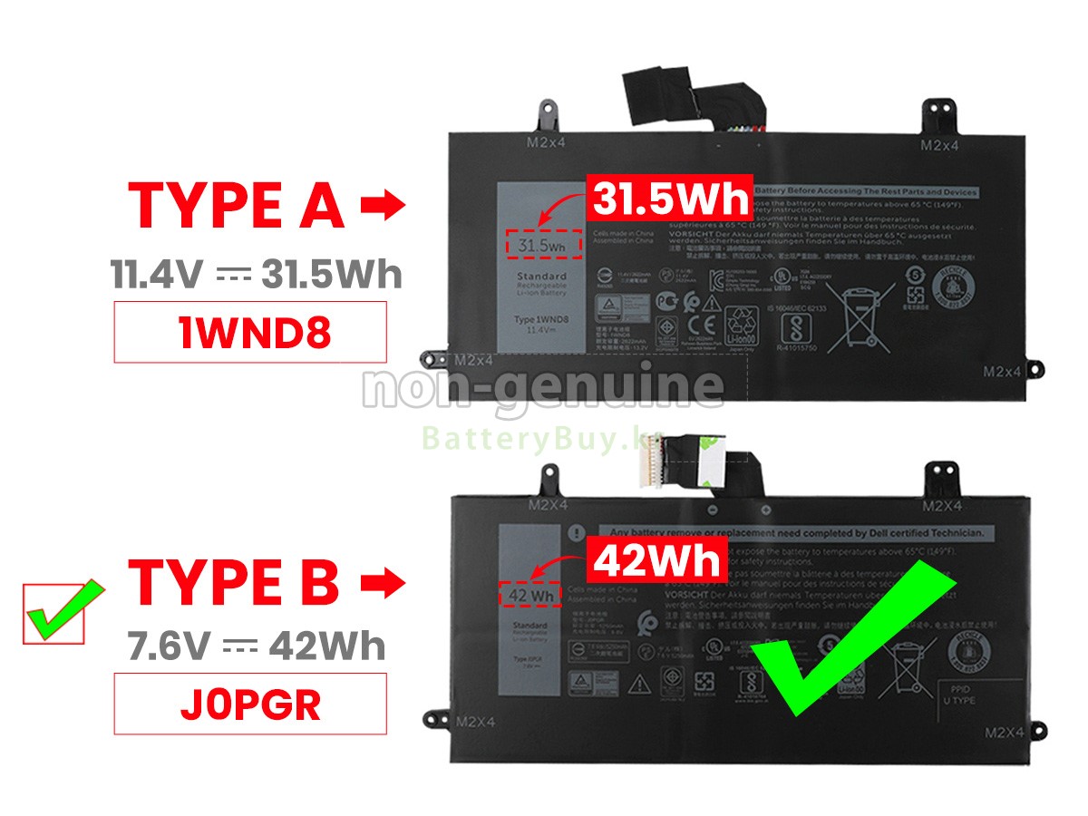2 고객님의 원 Dell JOPGR 배터리의 전압과 용량이 당사 제품과의 일치여부를 확인 후 당사의 확대 이미지에서 인터페이스, 대체적인 모양의 일치 여부를 확인하십시오.
