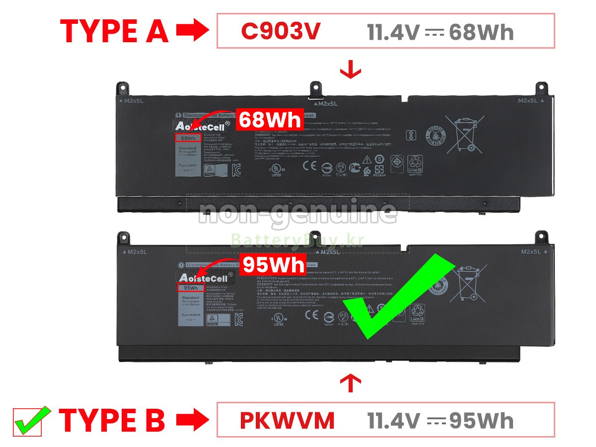 고품질 Dell P44E001 대체 배터리 (95Wh, 6셀)