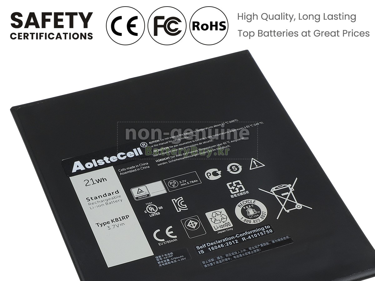 본 새로운 Dell T02E 대체용 배터리는 삼성, 파나소닉과 LG 등 오리지날 공장의 고품질 리튬이온셀을 적용하였고, 배터리의 케이스는 내용성 ABS플라스틱을 사용한 제품입니다. BatteryBuy.kr는 제품 안전성에 대해 요구가 엄격한 바 해당 Dell T02E 배터리 제품은 전부KC, CE, UL, ROHS, ISO 9001/9002 등 일련의 안전인증을 통과하여 국제표준에 부합되며 오리지날사의 규격과 100%로 호환가능하며 오리지널 T02E 배터리와 완전 매칭 심지어 초과 가능한 성능을 자랑하고 있습니다. 해당 Dell T02E 배터리의 충/방전 주기는 600회좌우인 바 최적의 배터리 라이프를 선사하고 있습니다.