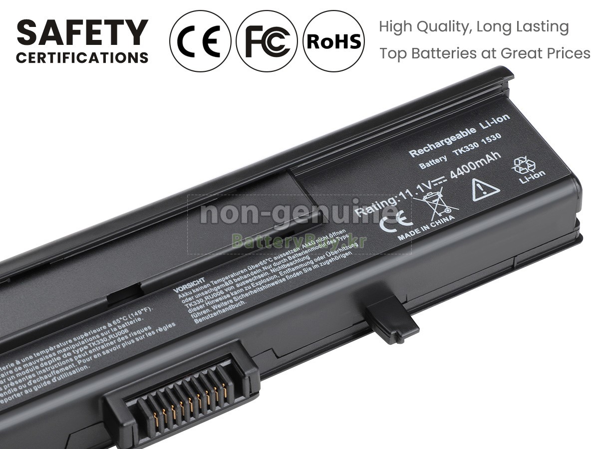 본 새로운 Dell TK330 대체용 배터리는 삼성, 파나소닉과 LG 등 오리지날 공장의 고품질 리튬이온셀을 적용하였고, 배터리의 케이스는 내용성 ABS플라스틱을 사용한 제품입니다. BatteryBuy.kr는 제품 안전성에 대해 요구가 엄격한 바 해당 Dell TK330 배터리 제품은 전부KC, CE, UL, ROHS, ISO 9001/9002 등 일련의 안전인증을 통과하여 국제표준에 부합되며 오리지날사의 규격과 100%로 호환가능하며 오리지널 TK330 배터리와 완전 매칭 심지어 초과 가능한 성능을 자랑하고 있습니다. 해당 Dell TK330 배터리의 충/방전 주기는 600회좌우인 바 최적의 배터리 라이프를 선사하고 있습니다.