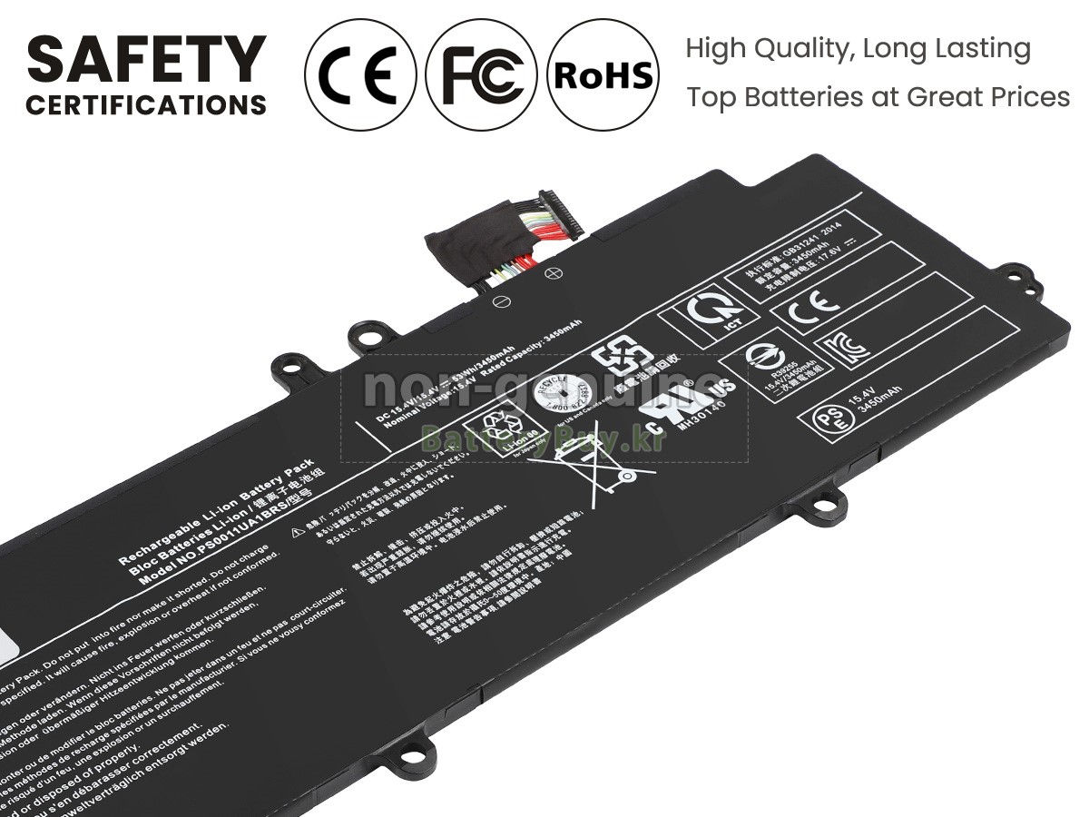 본 새로운 Dynabook PPH11L-0H102R 대체용 배터리는 삼성, 파나소닉과 LG 등 오리지날 공장의 고품질 리튬이온셀을 적용하였고, 배터리의 케이스는 내용성 ABS플라스틱을 사용한 제품입니다. BatteryBuy.kr는 제품 안전성에 대해 요구가 엄격한 바 해당 Dynabook PPH11L-0H102R 배터리 제품은 전부KC, CE, UL, ROHS, ISO 9001/9002 등 일련의 안전인증을 통과하여 국제표준에 부합되며 오리지날사의 규격과 100%로 호환가능하며 오리지널 PPH11L-0H102R 배터리와 완전 매칭 심지어 초과 가능한 성능을 자랑하고 있습니다. 해당 Dynabook PPH11L-0H102R 배터리의 충/방전 주기는 600회좌우인 바 최적의 배터리 라이프를 선사하고 있습니다.