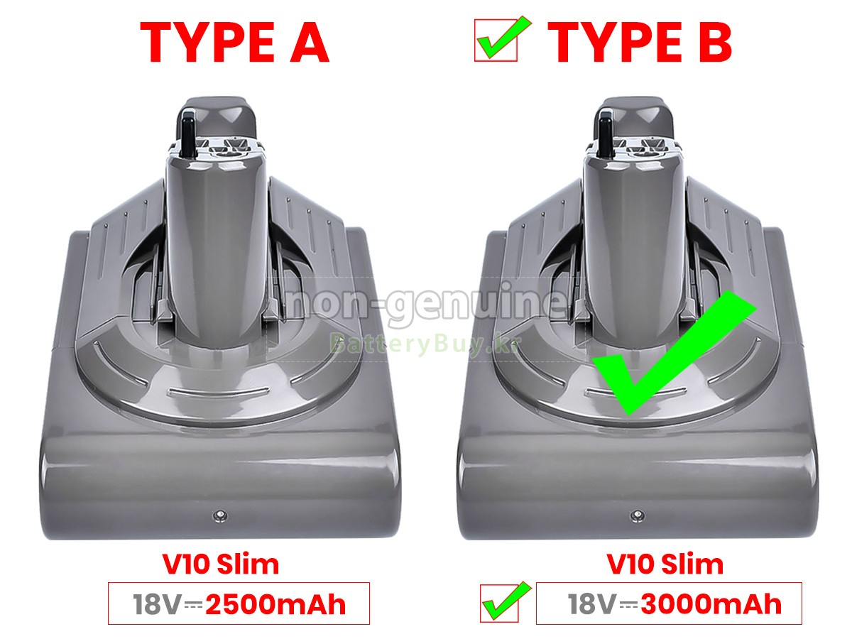 2 고객님의 원 Dyson V10-18V 진공청소기 배터리의 전압과 용량이 당사 제품과의 일치여부를 확인 후 당사의 확대 이미지에서 인터페이스, 대체적인 모양의 일치 여부를 확인하십시오.