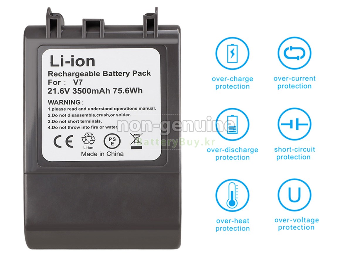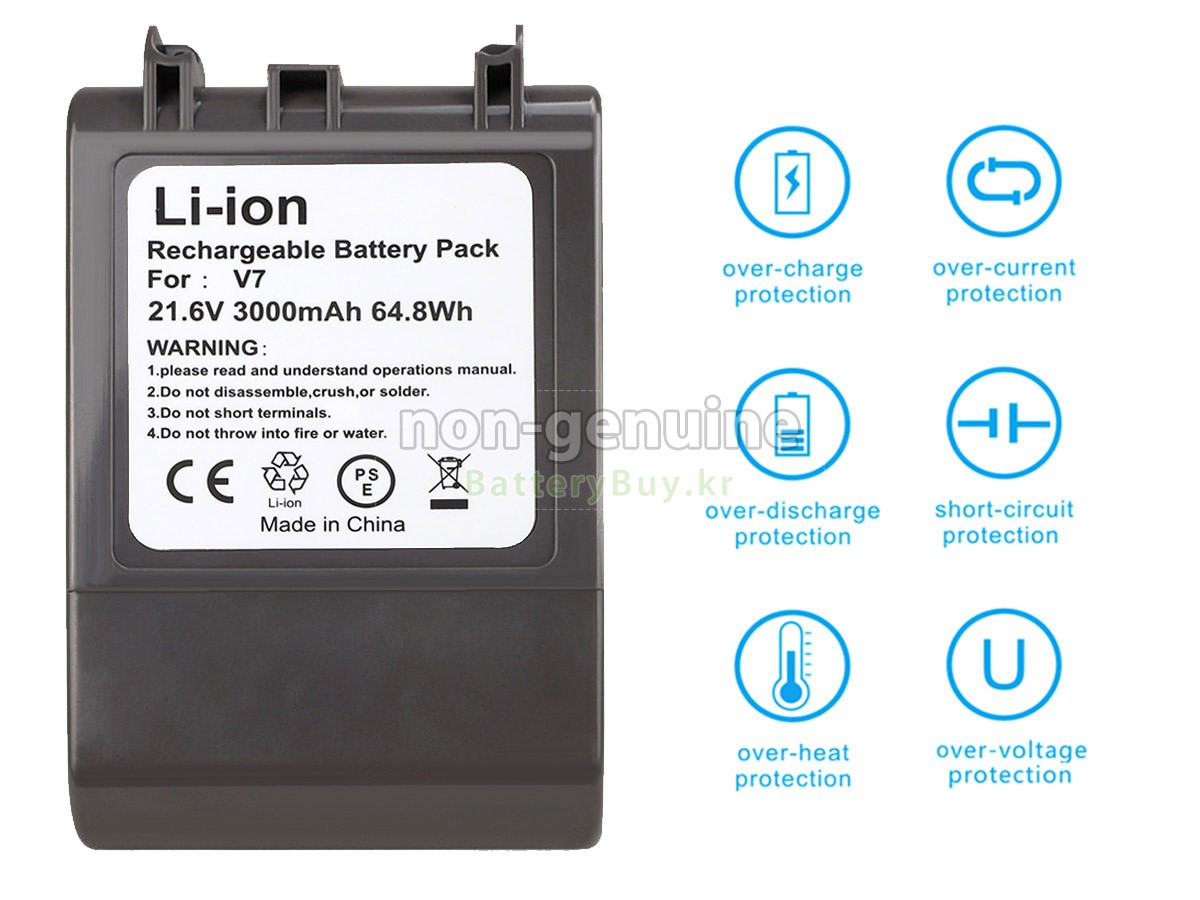 본 새로운 Dyson V7 MOTORHEAD VACUUM 대체용 배터리는 삼성, 파나소닉과 LG 등 오리지날 공장의 고품질 리튬이온셀을 적용하였고, 배터리의 케이스는 내용성 ABS플라스틱을 사용한 제품입니다. BatteryBuy.kr는 제품 안전성에 대해 요구가 엄격한 바 해당 Dyson V7 MOTORHEAD VACUUM 진공청소기 배터리 제품은 전부KC, CE, UL, ROHS, ISO 9001/9002 등 일련의 안전인증을 통과하여 국제표준에 부합되며 오리지날사의 규격과 100%로 호환가능하며 오리지널 V7 MOTORHEAD VACUUM 배터리와 완전 매칭 심지어 초과 가능한 성능을 자랑하고 있습니다. 해당 Dyson V7 MOTORHEAD VACUUM 배터리의 충/방전 주기는 600회좌우인 바 최적의 배터리 라이프를 선사하고 있습니다.