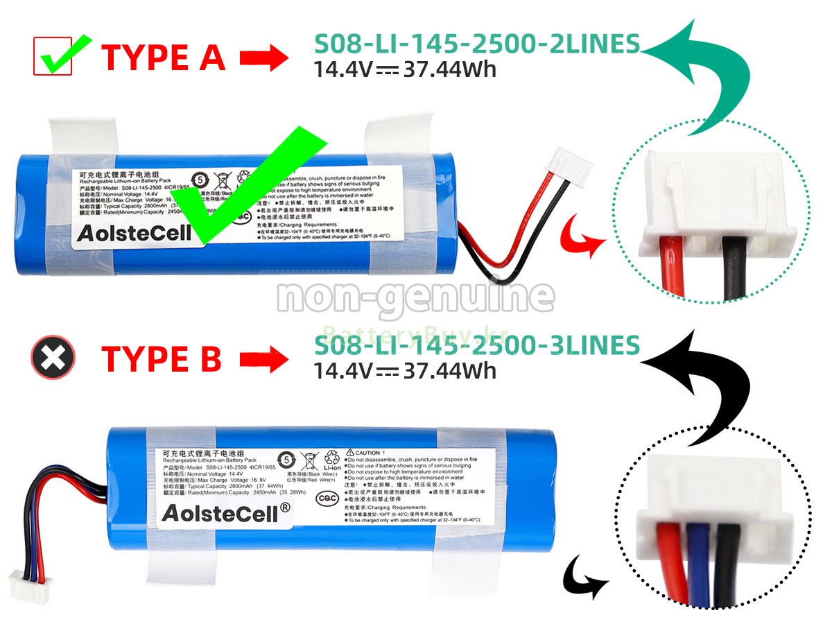 2 고객님의 원 Ecovacs DK36 진공청소기 배터리의 전압과 용량이 당사 제품과의 일치여부를 확인 후 당사의 확대 이미지에서 인터페이스, 대체적인 모양의 일치 여부를 확인하십시오.
