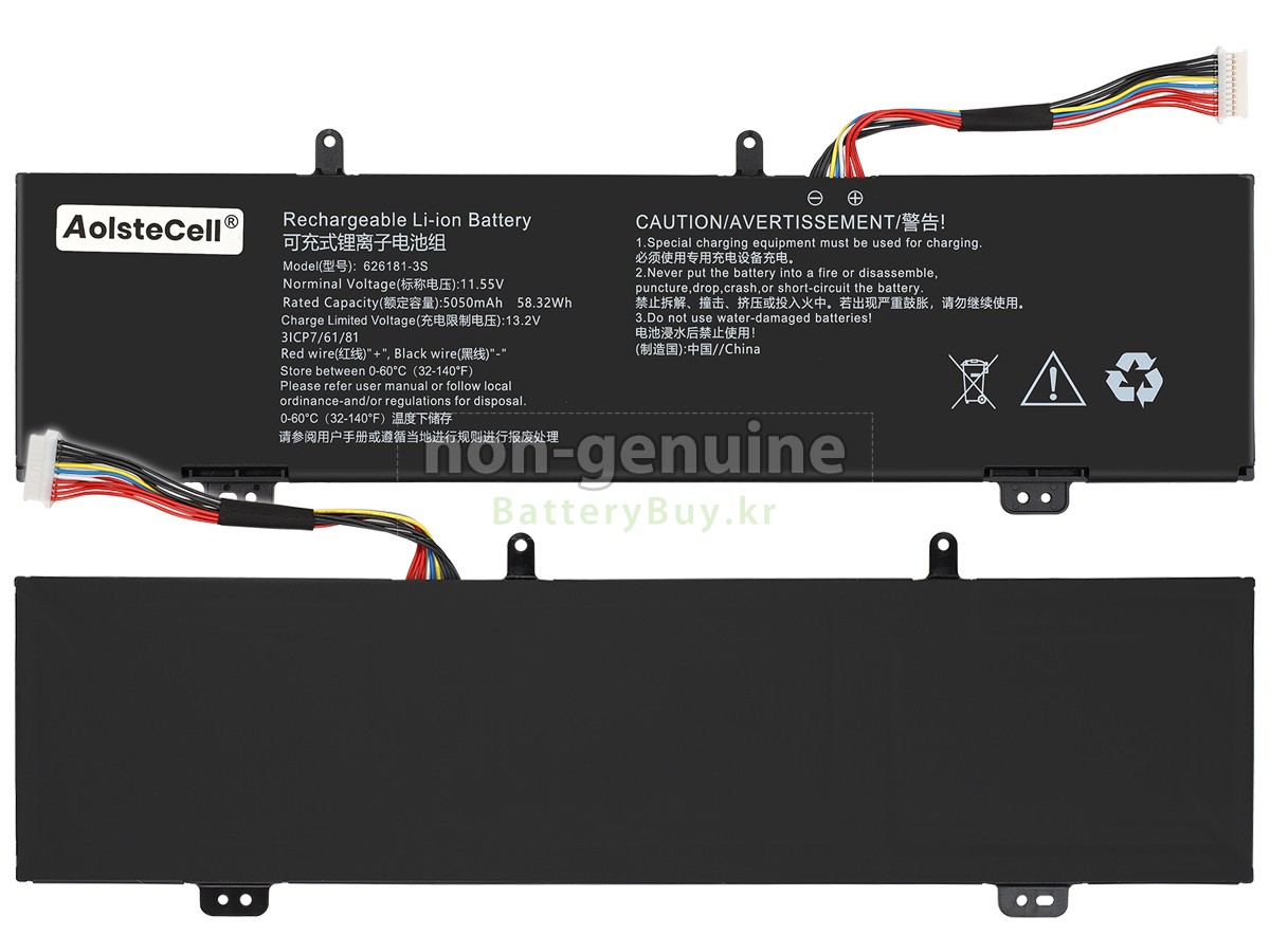 본 새로운 Firebat 626181-3S 대체용 배터리는 삼성, 파나소닉과 LG 등 오리지날 공장의 고품질 리튬이온셀을 적용하였고, 배터리의 케이스는 내용성 ABS플라스틱을 사용한 제품입니다. BatteryBuy.kr는 제품 안전성에 대해 요구가 엄격한 바 해당 Firebat 626181-3S 배터리 제품은 전부KC, CE, UL, ROHS, ISO 9001/9002 등 일련의 안전인증을 통과하여 국제표준에 부합되며 오리지날사의 규격과 100%로 호환가능하며 오리지널 626181-3S 배터리와 완전 매칭 심지어 초과 가능한 성능을 자랑하고 있습니다. 해당 Firebat 626181-3S 배터리의 충/방전 주기는 600회좌우인 바 최적의 배터리 라이프를 선사하고 있습니다.