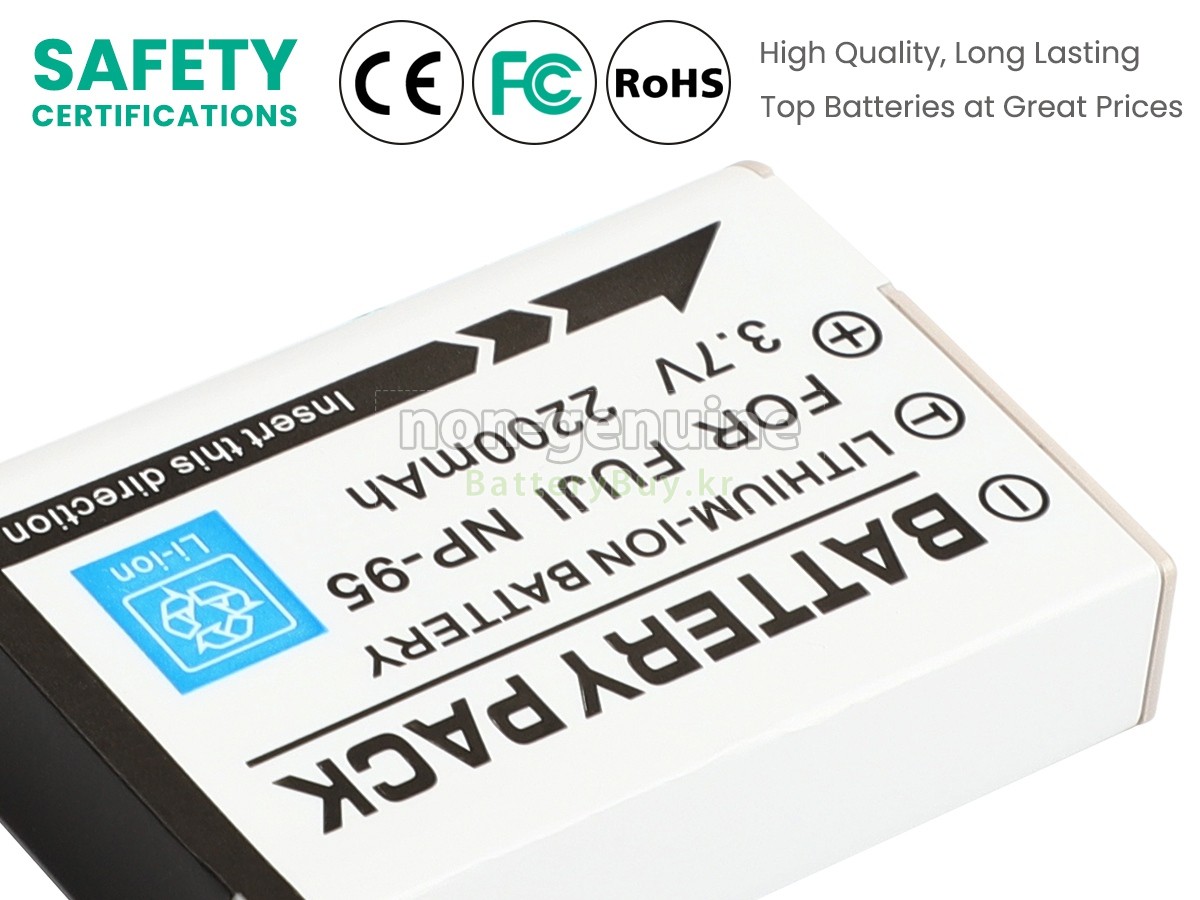 본 새로운 Fujifilm X100 대체용 배터리는 삼성, 파나소닉과 LG 등 오리지날 공장의 고품질 리튬이온셀을 적용하였고, 배터리의 케이스는 내용성 ABS플라스틱을 사용한 제품입니다. BatteryBuy.kr는 제품 안전성에 대해 요구가 엄격한 바 해당 Fujifilm X100 배터리 제품은 전부KC, CE, UL, ROHS, ISO 9001/9002 등 일련의 안전인증을 통과하여 국제표준에 부합되며 오리지날사의 규격과 100%로 호환가능하며 오리지널 X100 배터리와 완전 매칭 심지어 초과 가능한 성능을 자랑하고 있습니다. 해당 Fujifilm X100 배터리의 충/방전 주기는 600회좌우인 바 최적의 배터리 라이프를 선사하고 있습니다.