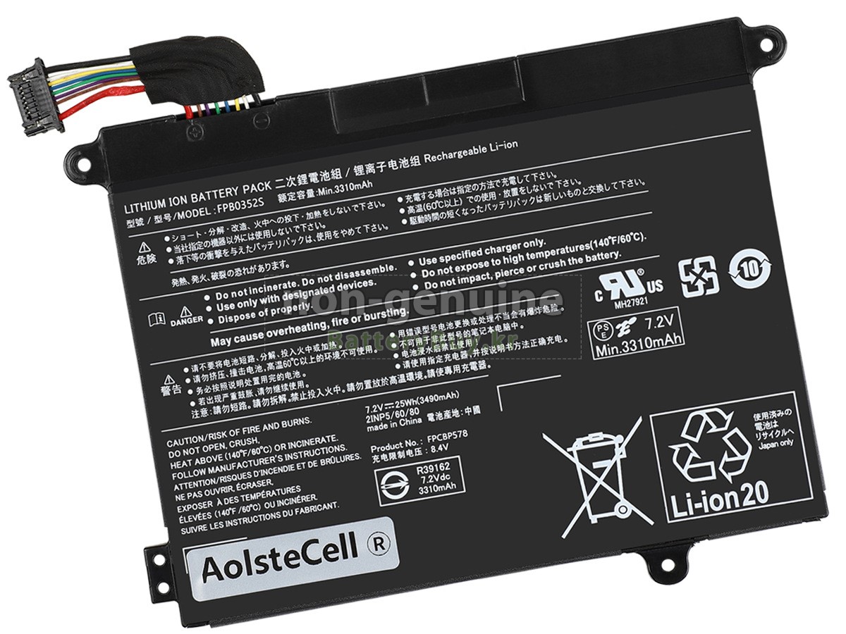 본 새로운 Fujitsu FPB0352S 대체용 배터리는 삼성, 파나소닉과 LG 등 오리지날 공장의 고품질 리튬이온셀을 적용하였고, 배터리의 케이스는 내용성 ABS플라스틱을 사용한 제품입니다. BatteryBuy.kr는 제품 안전성에 대해 요구가 엄격한 바 해당 Fujitsu FPB0352S 배터리 제품은 전부KC, CE, UL, ROHS, ISO 9001/9002 등 일련의 안전인증을 통과하여 국제표준에 부합되며 오리지날사의 규격과 100%로 호환가능하며 오리지널 FPB0352S 배터리와 완전 매칭 심지어 초과 가능한 성능을 자랑하고 있습니다. 해당 Fujitsu FPB0352S 배터리의 충/방전 주기는 600회좌우인 바 최적의 배터리 라이프를 선사하고 있습니다.